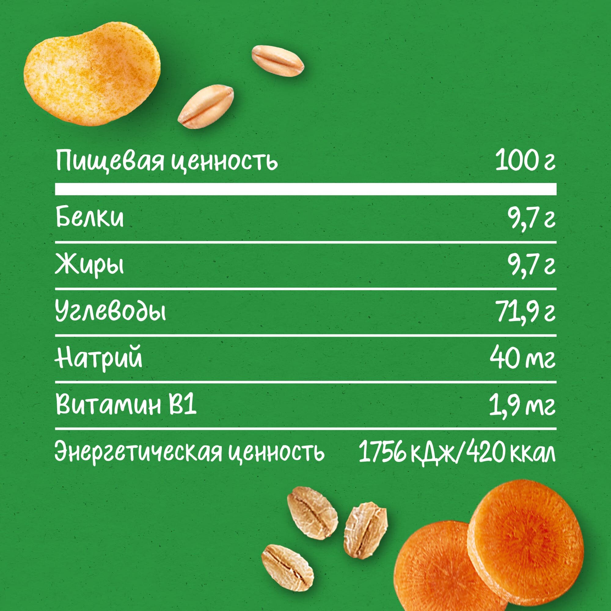 | Состав | Мука пшеничная (содержит глютен) (78,8%), мука овсяная (содержит глютен) (8,1%), масло подсолнечное высокоолеиновое, морковь(3,1%), мука рисовая** (1%), апельсин (0,3%), регулятор pH карбонат кальция, антиокислитель концентрат смеси токоферолов, витамин B1 (тиамина мононитрат). |