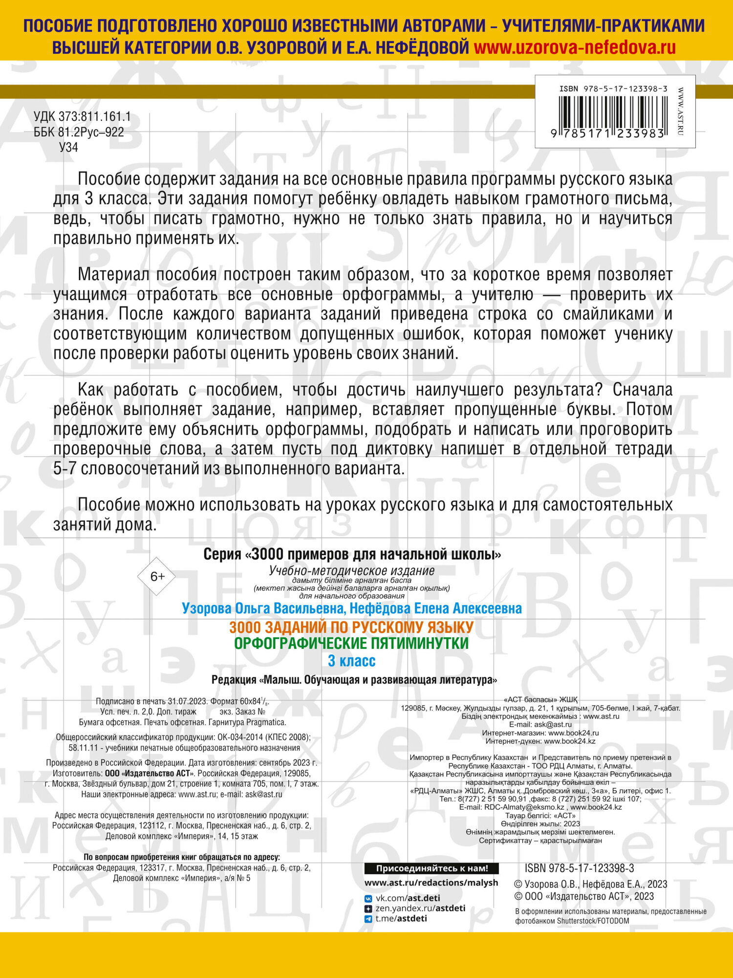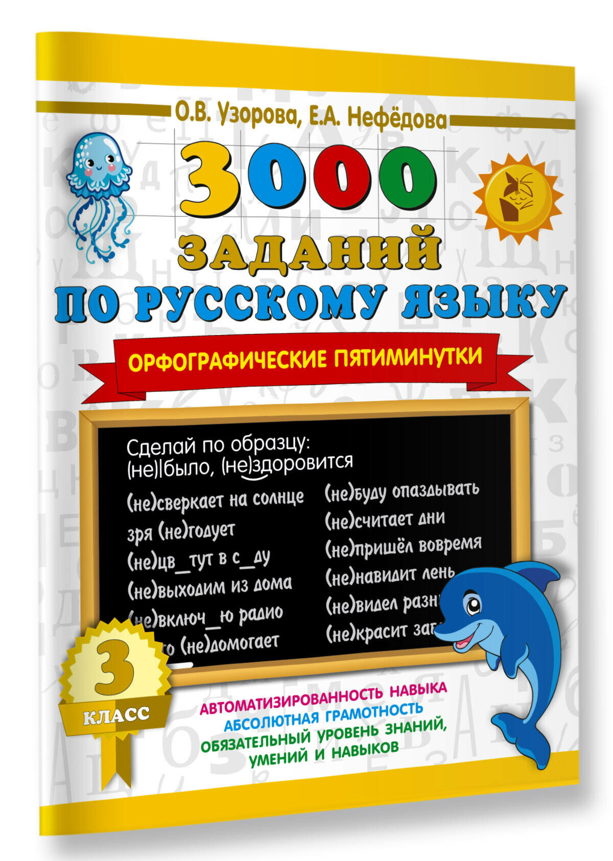 3000 заданий по русскому языку. Орфографические пятиминутки. 3 класс (Елена Алексеевна Нефедова, Ольга Васильевна Узорова); АСТ, 2023