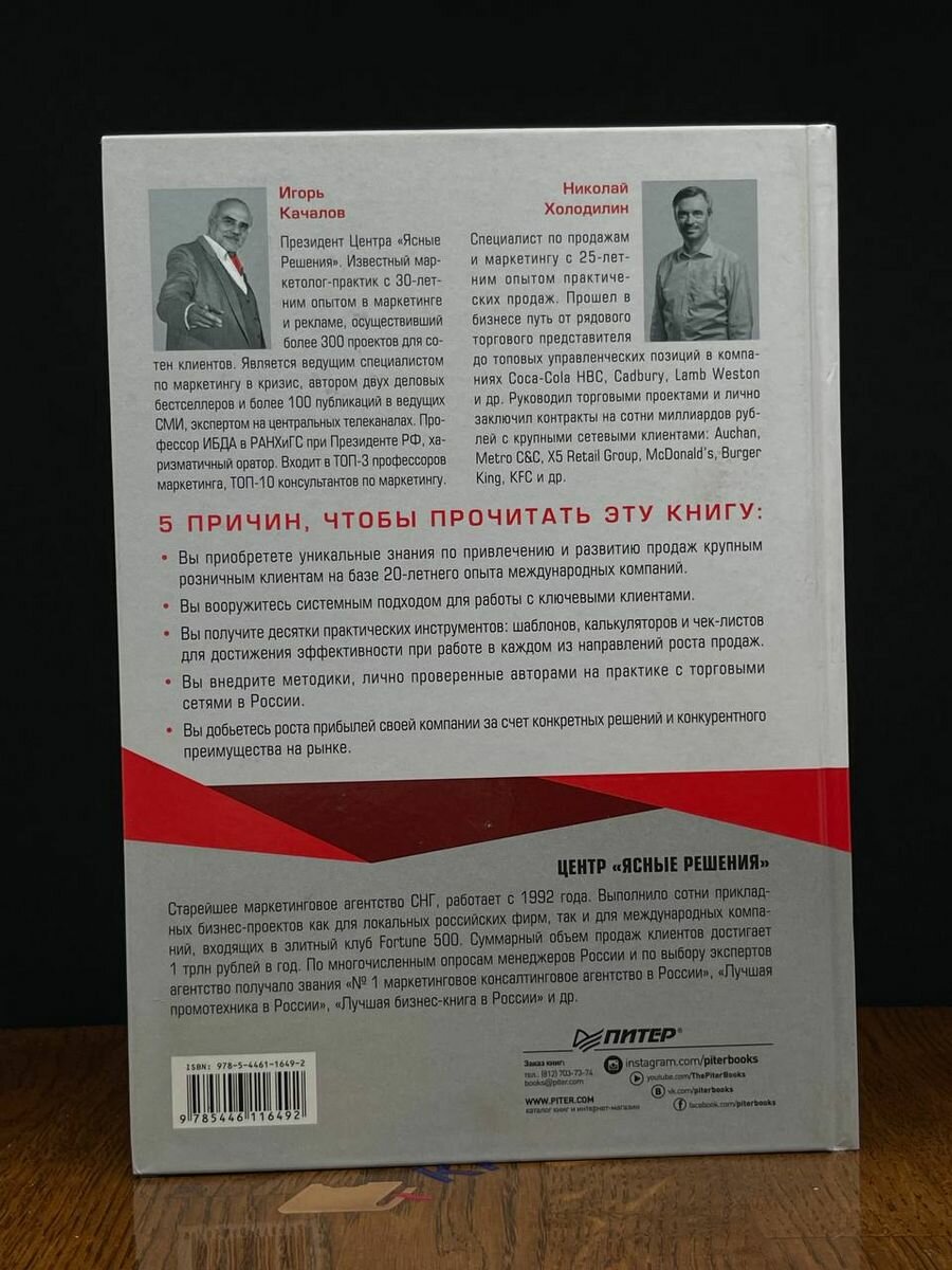 Эта книга является первым в России изданием по привлечению и развитию продаж крупным розничным клиентам. Она основана на базе двадцатилетнего опыта продаж крупнейших международных компаний таких как Coca Cola HBC Eurasia, Lamb Western и многих других.