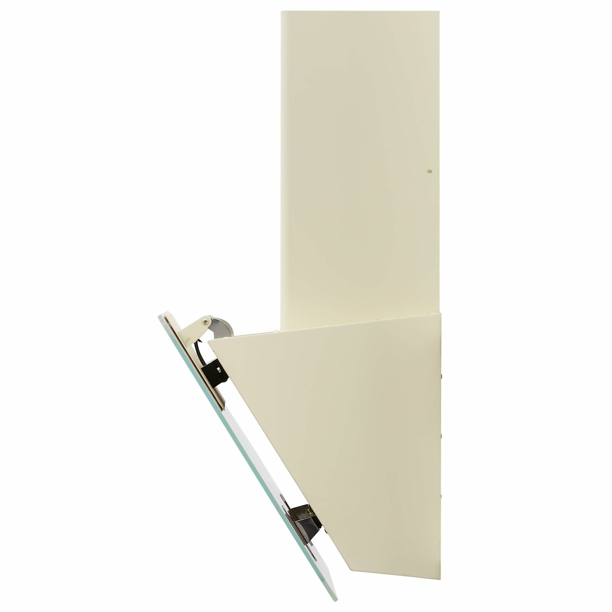 Откидная панель вытяжки полностью выполнена из стекла, что делает эту модель идеальным дополнением любой кухни как в классическом стиле, так и в стиле модерн и хай-тек.