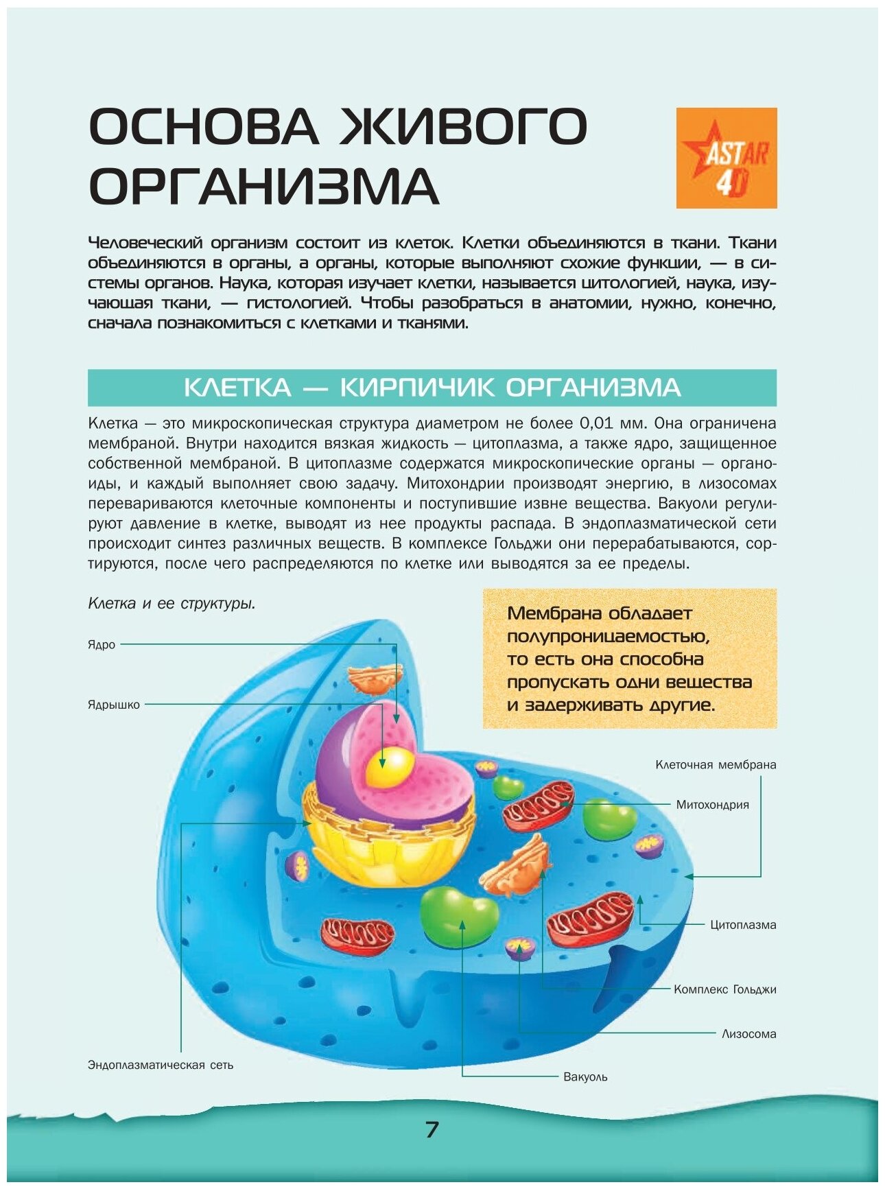Большой 4D-атлас анатомии человека с дополненной реальностью - это отличный способ быстро и увлекательно изучить строение и функционирование такого сложного организма, как наше тело. На этих страницах полно и всеобъемлюще раскрывается анатомия и физиология человека, начиная с мельчайшей структурной единицы - клетки и заканчивая органами и системами, работающими как единое целое. А современные 4D-технологии позволят увидеть в буквальном смысле этого слова, как бьется сердце и происходит газообмен в легких, как переваривается пища в желудке и кишечнике и очищается кровь в печени и почках, а также разобраться, как взаимодействуют кости, связки, мышцы. Дополненная реальность, звуковые эффекты и нестандартно изложенная познавательная информация сделают изучение непростого человеческого организма легким и интересным.