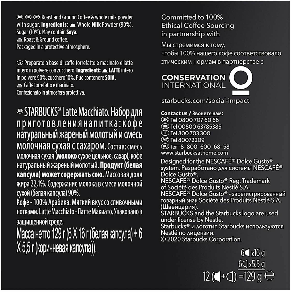 Кофе в капсулах Starbucks Latte Macchiato для системы Nescafe Dolce Gusto 12шт