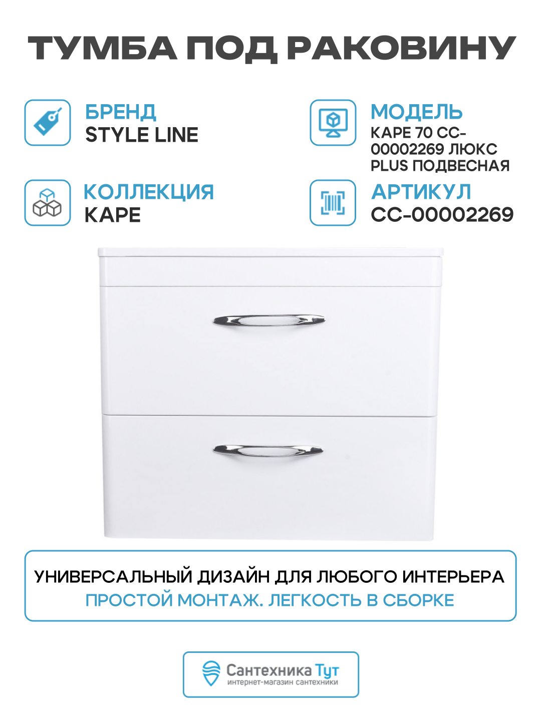 Тумба подвесная Style Line Каре 70 – артикул СС-00002269