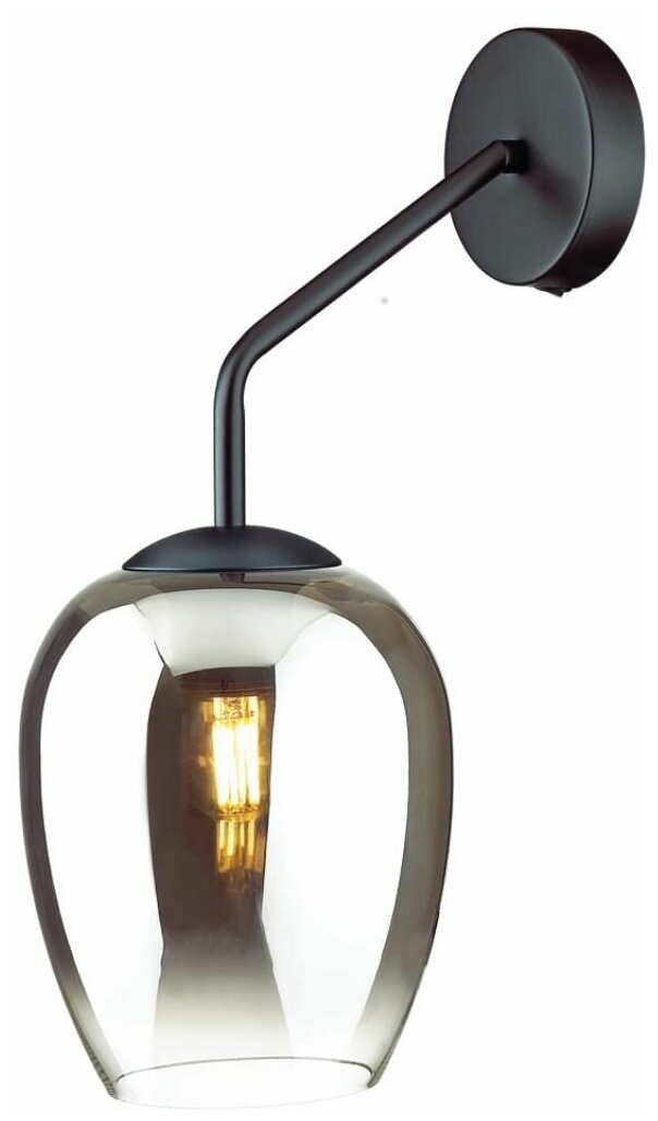 Оригинальное бра из коллекции PALTA гармонично дополнит интерьер, оформленный в стиле эклектика, модерн или неолофт, и поможет зонировать пространство. Круглое основание и рожок, напоминающий ветку дерева, изготовлены из металла, окрашенного в глубокий черный цвет. Плафон-бокал, тонированный в технике градиент, красиво декорирует источник света. Затемненное вверху стекло постепенно светлеет и становится практически бесцветным. Плавные, мягкие переходы оттенков создают необычный оптический эффект. Миниатюрный выключатель расположен на корпусе прибора.
