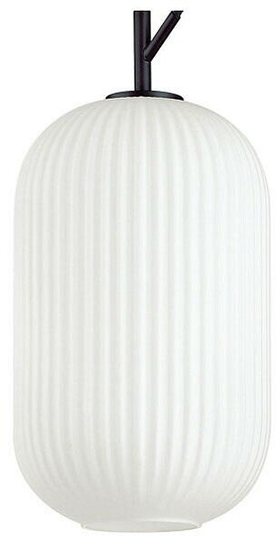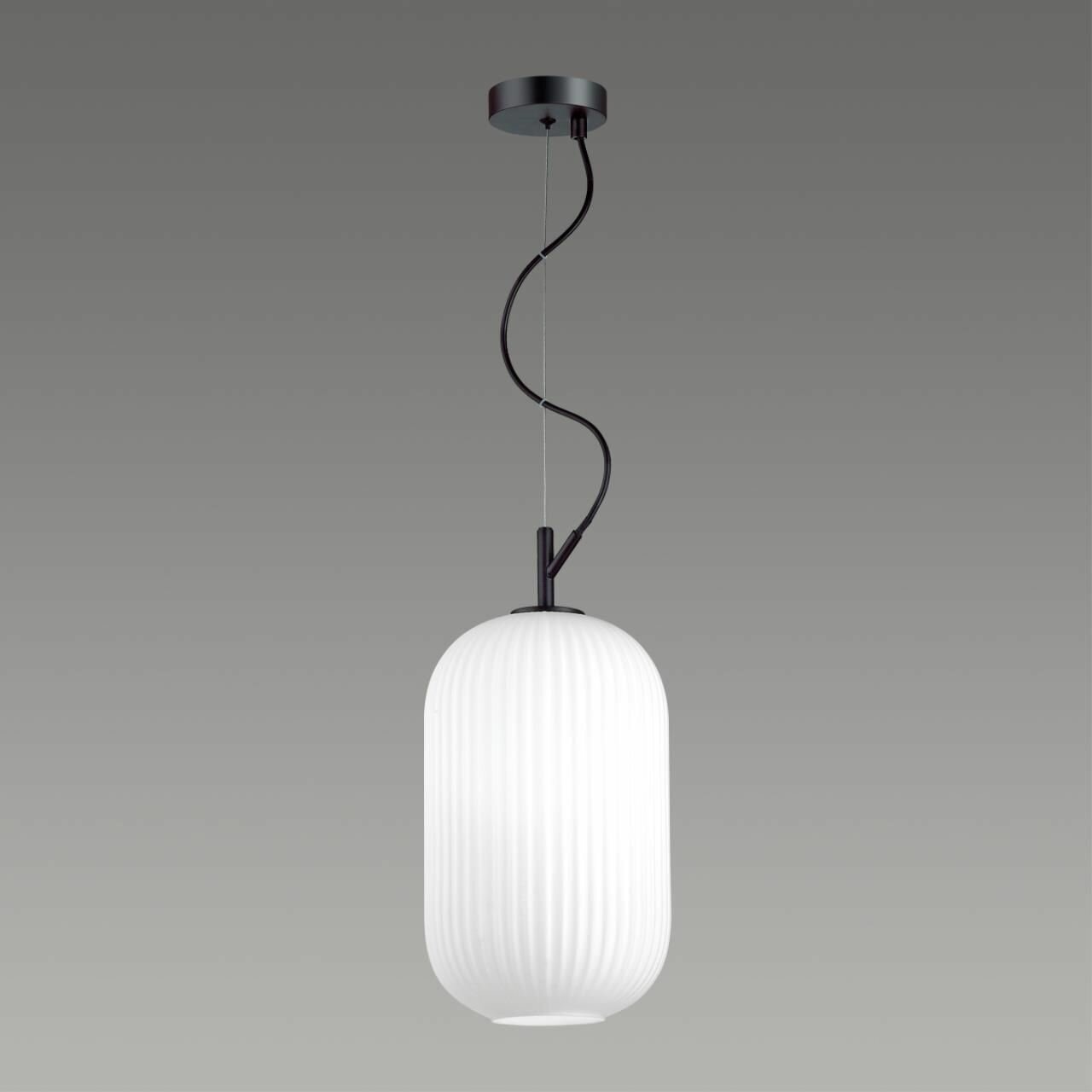Белоснежный подвесной светильник придется по вкусу любителям стиля минимализм. Основание прибора выполнено из металла, окрашенного в глубокий черный цвет. Элегантный округлый плафон из рифленого матового стекла, подвешенный на тонком тросе и декорированный гибким шнуром в тон основанию, смотрится по-современному лаконично. С помощью нескольких подвесов из этой коллекции можно создать уютное, атмосферное освещение в кухне или использовать модель соло для организации подсветки обеденной зоны.