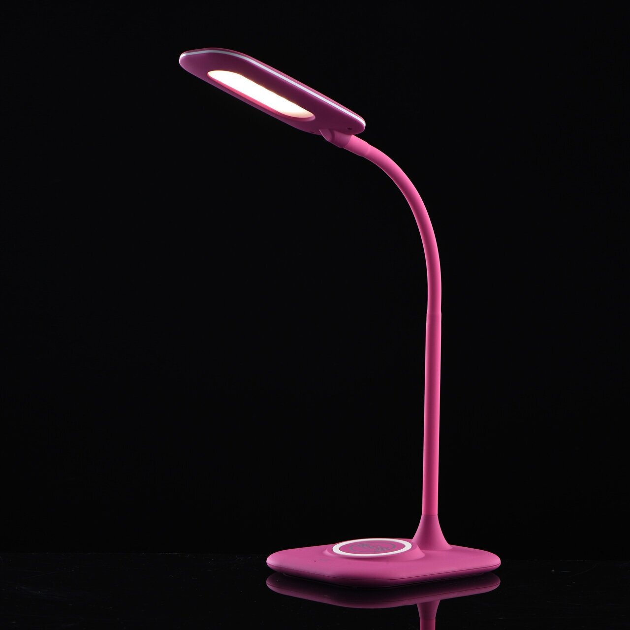 Настольная лампа – хороший выбор для обустройства рабочего места школьника или студента. Светильник компактен и эргономичен: гибкая стойка позволяет приблизить плафон к поверхности стола, поток света легко направить в нужную сторону. Основание и плоский прямоугольный плафон выполнены из акрила с тактильно приятным покрытием soft-touch. Предусмотрена трехрежимная регулировка яркости света. Дополнительное удобство создает беспроводное зарядное устройство: параллельно с выполнением учебных заданий можно заряжать гаджеты.
