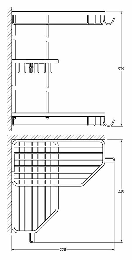 Тип товара: Полочка-решётка угловая 3-ярусная с крючками