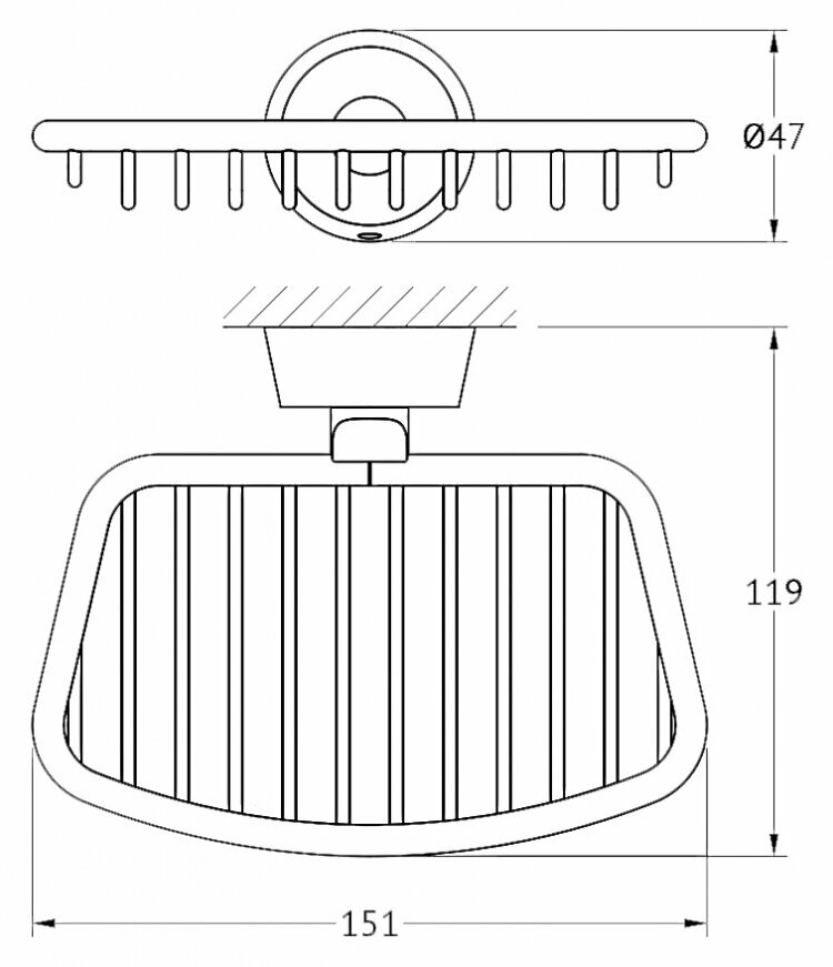 Подходит для использования в душевых кабинах или над самой ванной. Решетчатая конструкция дает возможность свободно стекать остаткам мыла и брызгам воды из-под душа. Мыльница разработана таким образом, что малое расстояние между прутьями не позволяет мылу соскальзывать между ними. Это является преимуществом перед аналогичными аксессуарами других производителей, которые экономят на количестве прутьев.