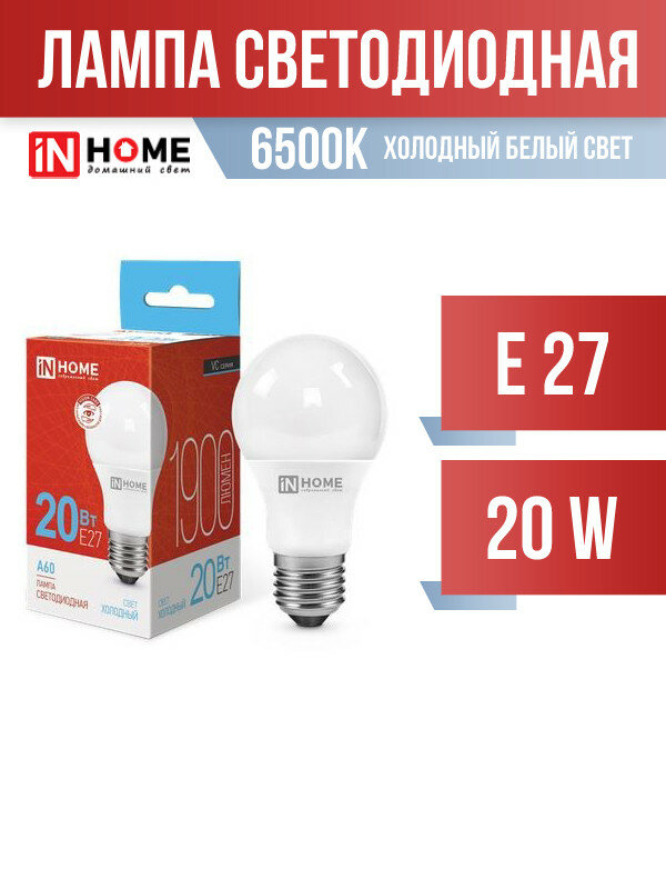 Упаковка ламп INHOME LED-A60-VC 20Вт 1800lm 30000ч 6500К E27 10 шт.