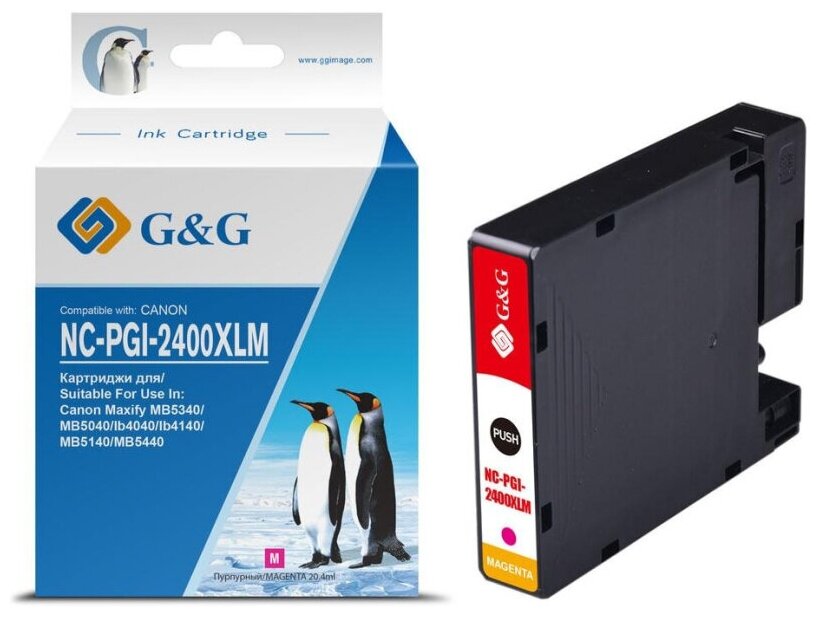 Картридж струйный G&G PGI-2400XL M пурпурный (20.4мл) для Canon MAXIFY iB4040/ МВ5040 NC-PGI-2400XLM