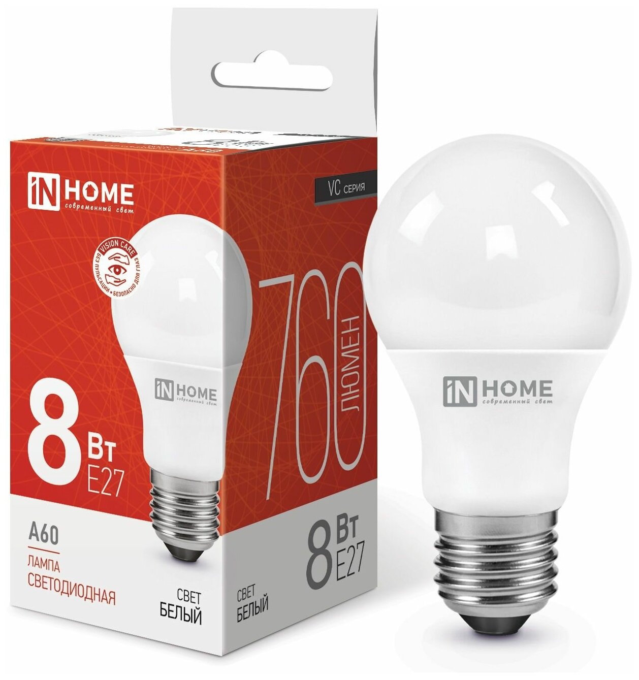 Упаковка ламп INHOME LED-A60-VC 8Вт 720lm 30000ч 4000К E27 10 шт.