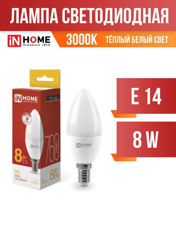 Упаковка ламп INHOME LED-VC 8Вт 600lm 30000ч 3000К E14 10 шт.
