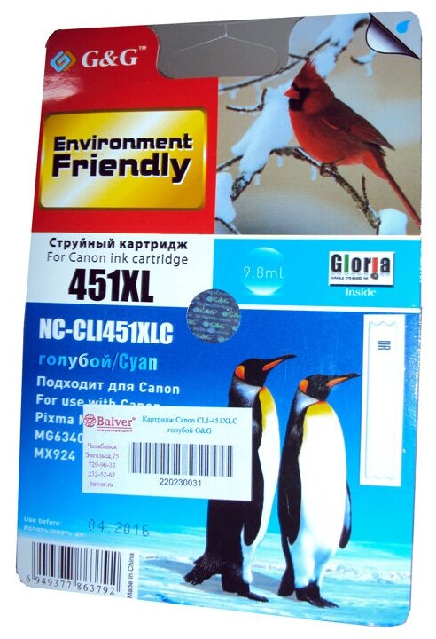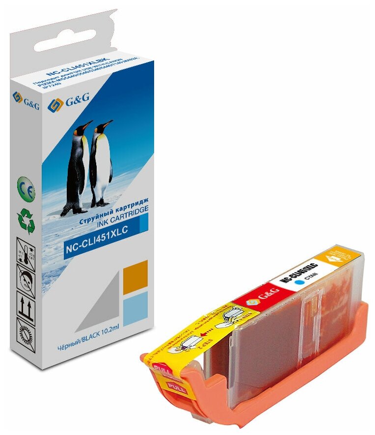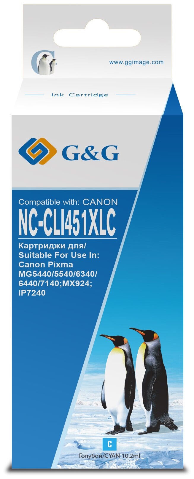 Картридж струйный G&G CLI-451XL С голубой (10.2мл) для Canon MG6340/5440/IP7240 NC-CLI451XLC