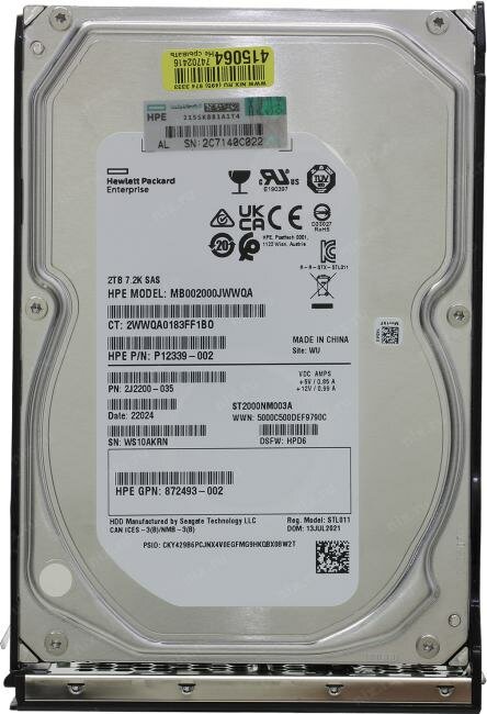 Жесткий диск HPE 1x2Tb SAS 7.2K Hot Swapp 3.5" 833926-B21