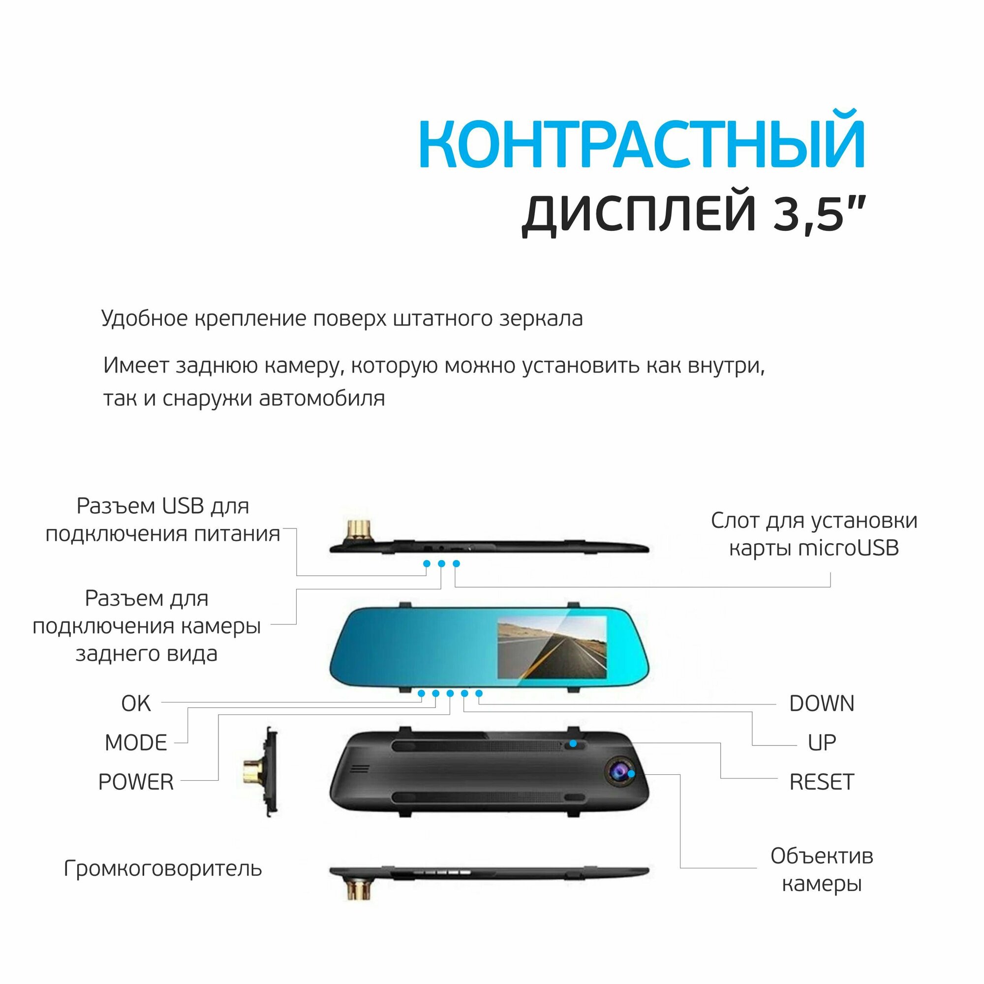 | Дополнительная информация | крепление на штатном зеркале |