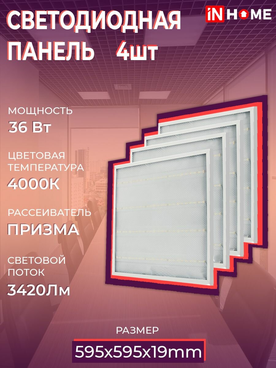 Сервис сравнения цен СкидкаГИД предлагает сравнить цены на товар «Панель светодиод. Inhome LPU-02 36Вт 4000K белый призма (упак.:4шт)»