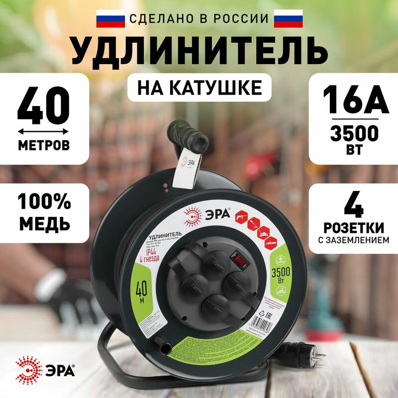 Удлинитель силовой Эра RMx-4es-3x1.5-40m-IP44(KG) (Б0046848) 3x1.5кв.мм 4розет. 40м ПВС 16A метал.ка