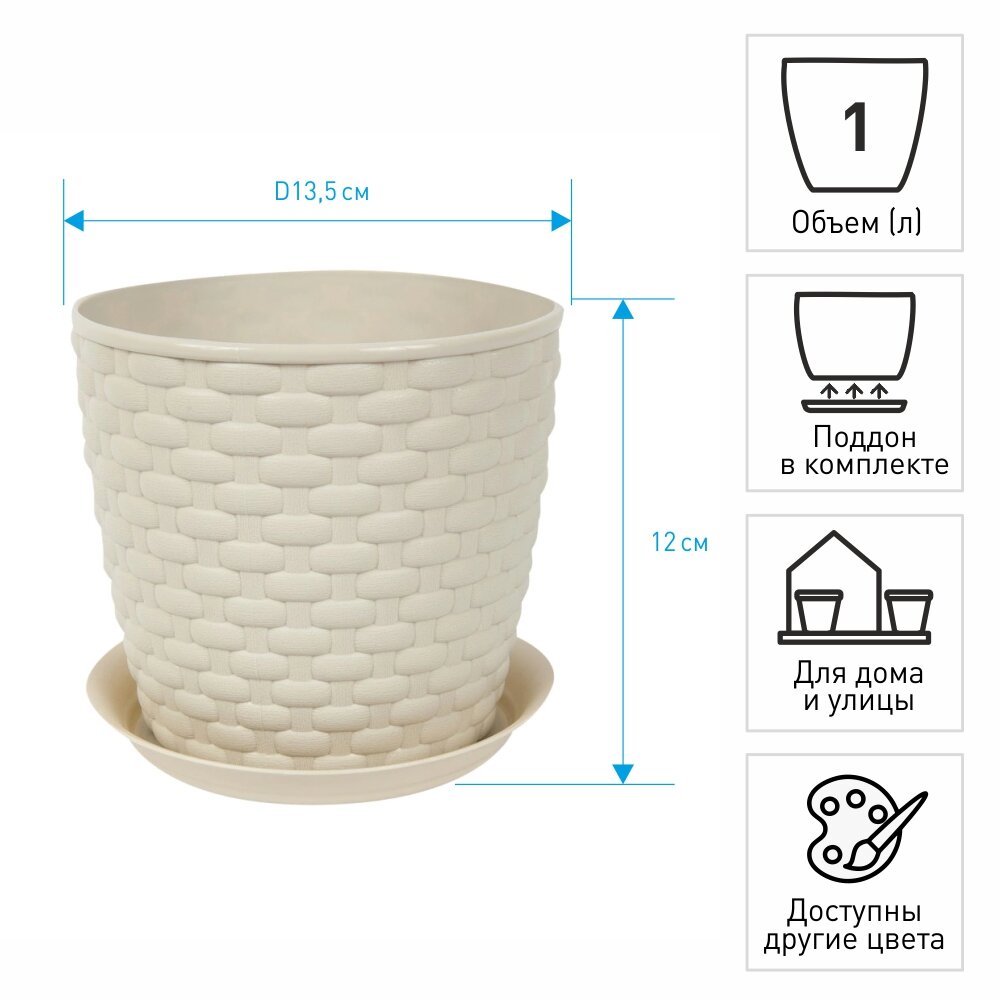 Кашпо IDEA Ротанг М 3080 белое D13,5 1 л с поддоном