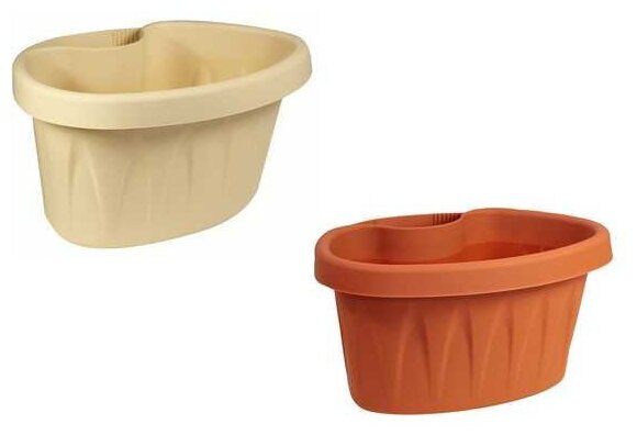 На дне кашпо оснащено столбиками с отверстиями для отвода лишней воды (во время дождя или при чрезмерном поливе). Кашпо из прочного пластика не боится прямых солнечных лучей и перепадов температур.