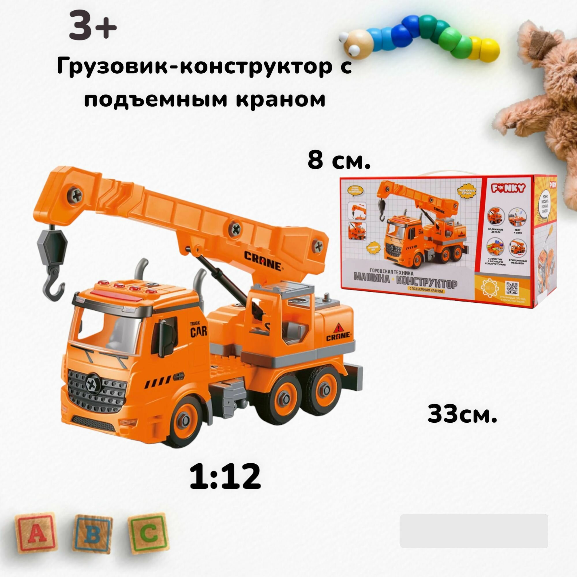 Модель: Грузовик-конструктор с подъемным краном, фрикционный, свет, звук, 1:12