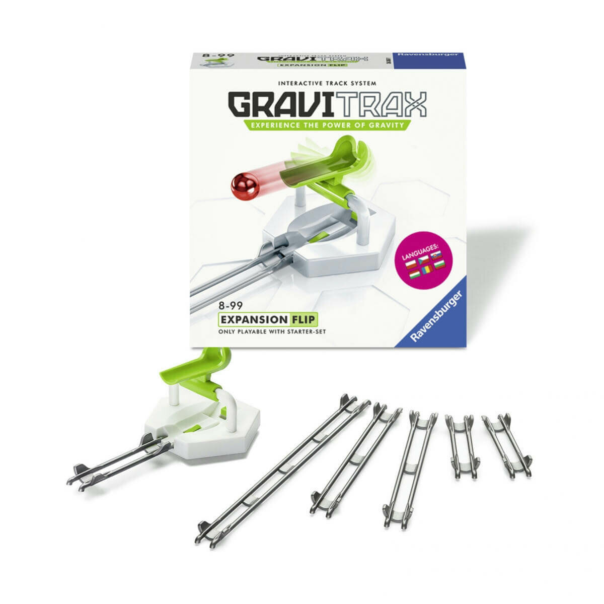 Объединяй Стартовый набор GraviTrax и дополнительный набор Рогатка, чтобы отправь шарик в полет! С помощью дополнительного набора Рогатка подними шарик на уровень выше и запусти его в противоположном направлении! Описав невероятный полукруг в 180˚, твой шарик сможет преодолеть огромное расстояние.