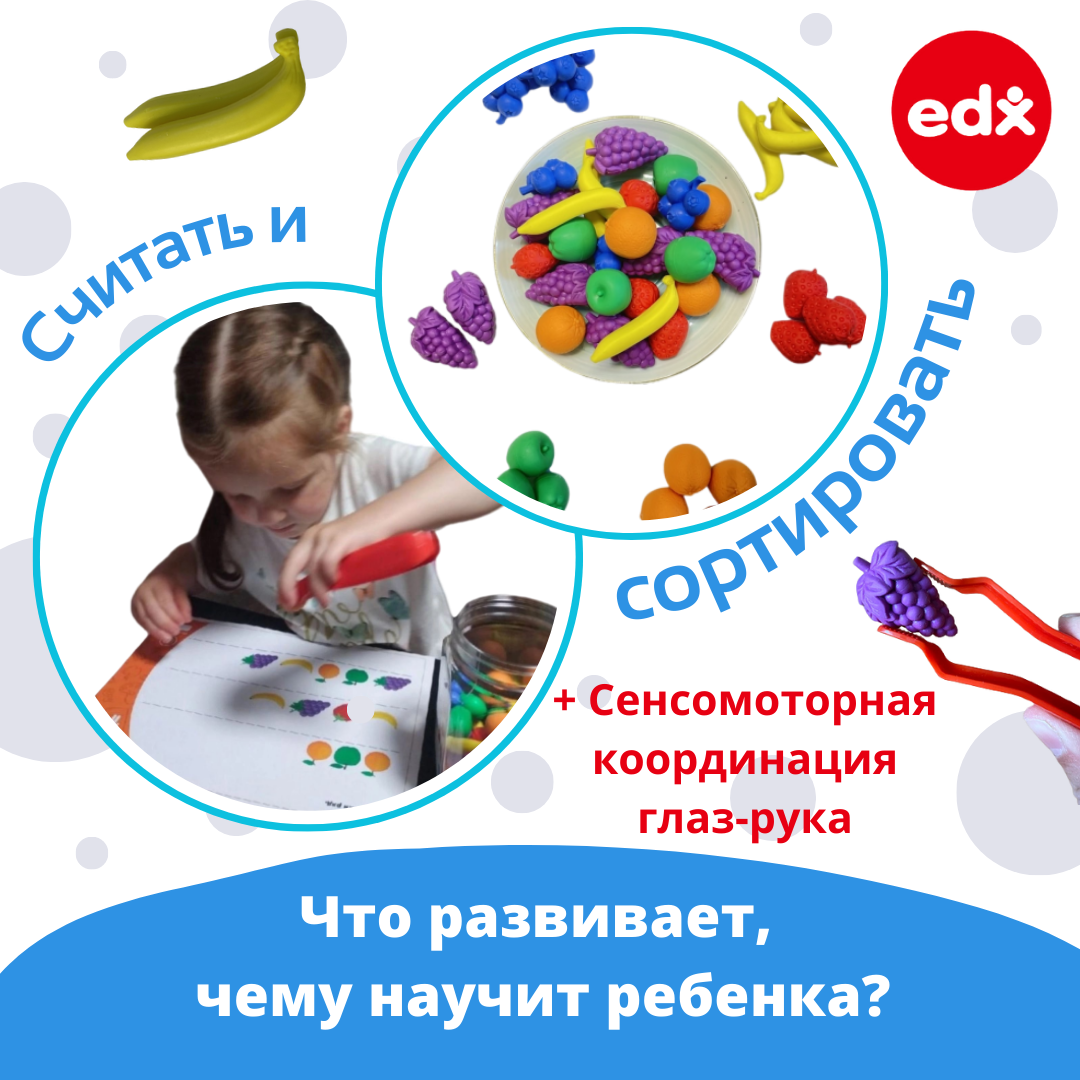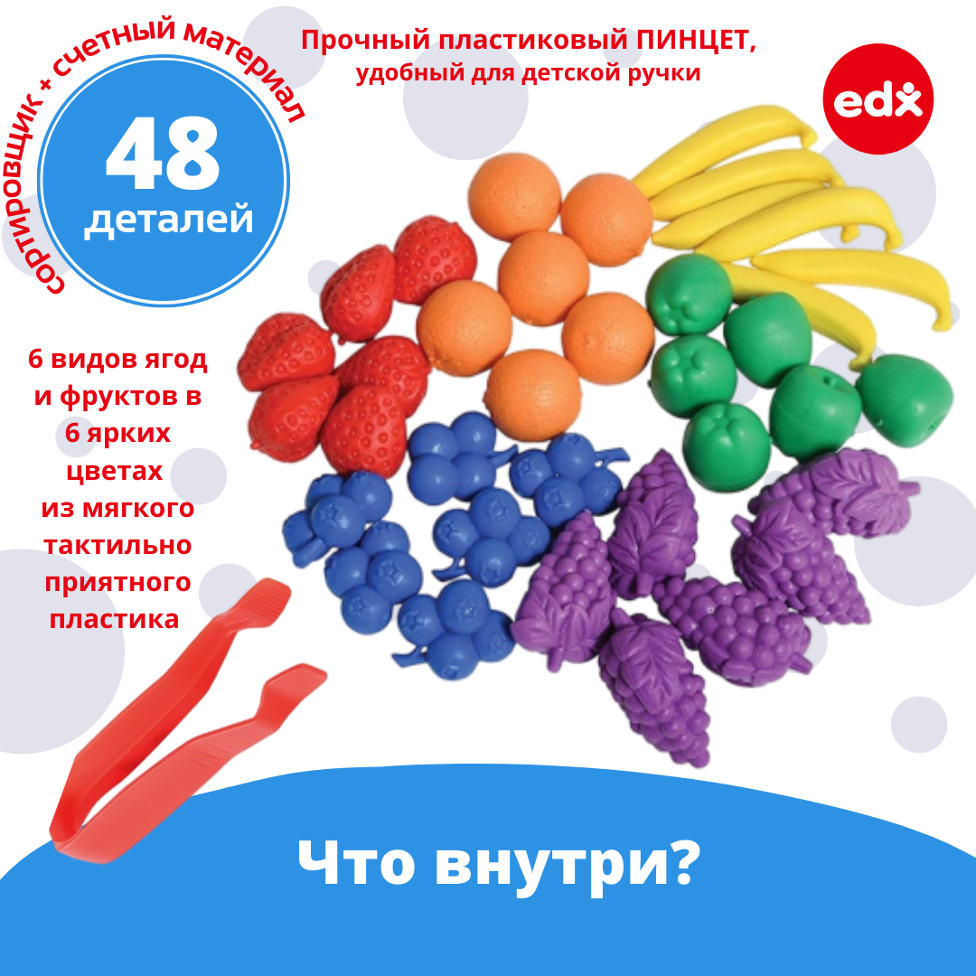 Сервис сравнения цен СкидкаГИД предлагает сравнить цены на товар «Развивающие фигурки EDX Education Фрукты 48 штук. Игрушка счетный материал Счетный материал Фрукты»