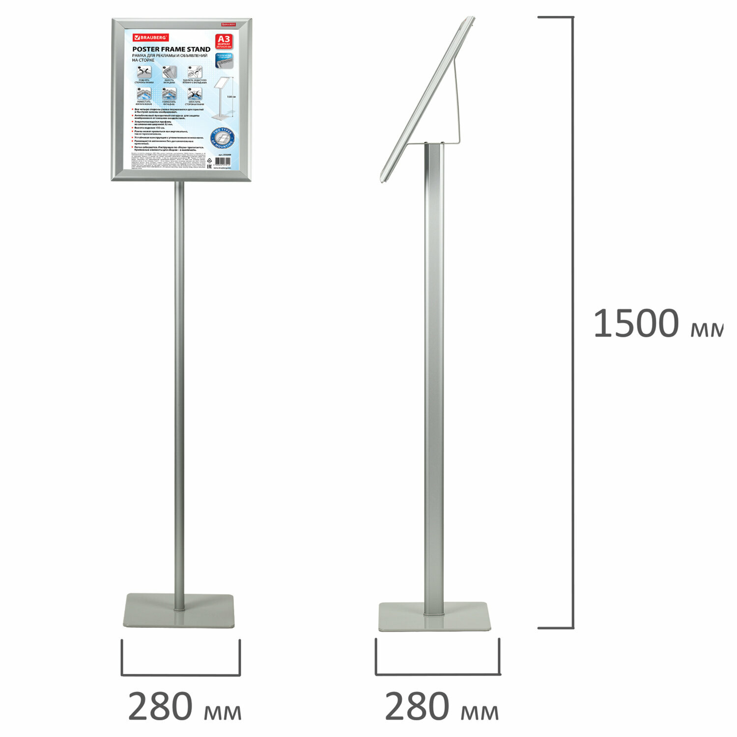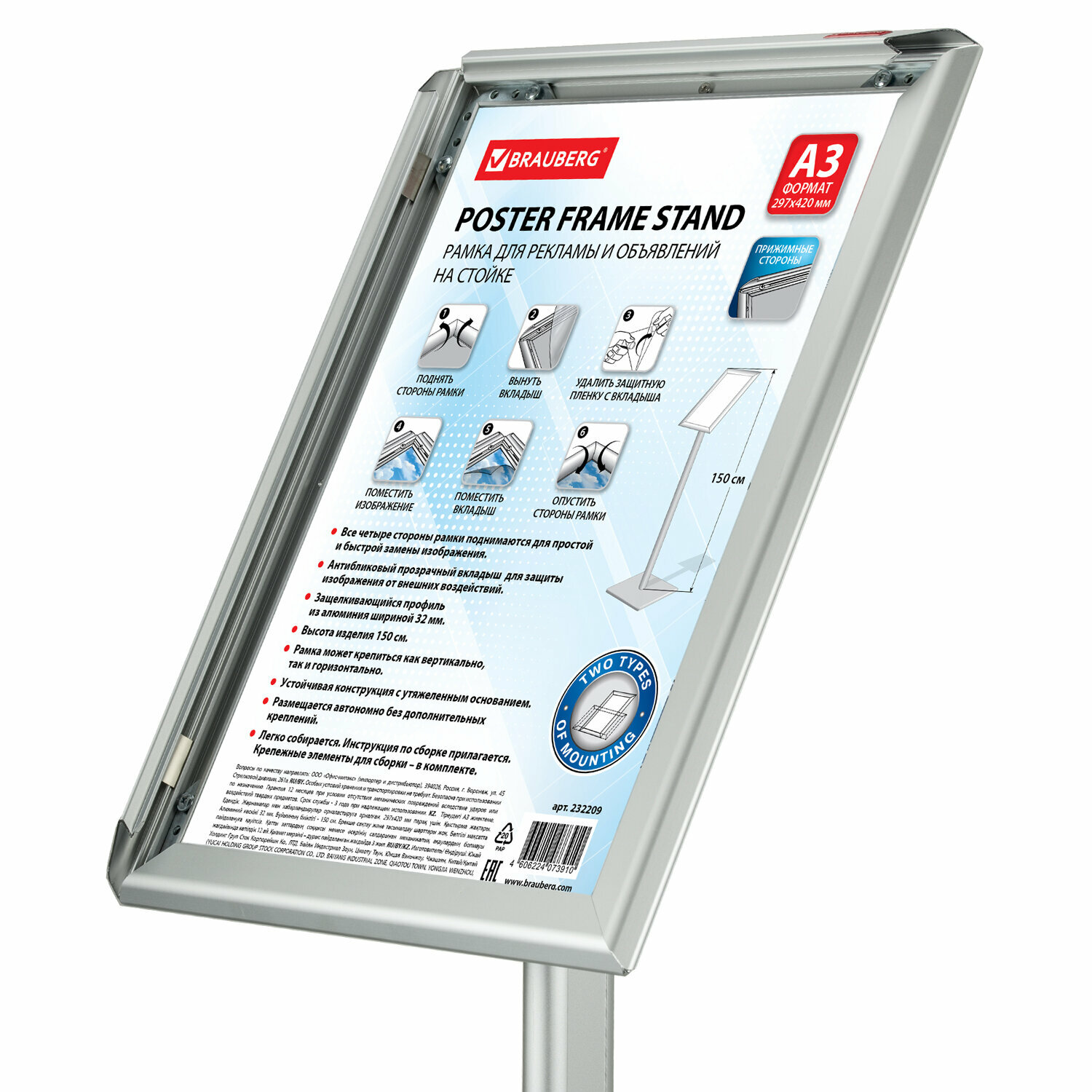 Рамка для рекламы и объявлений BRAUBERG 42x594 см Рамка настенная для рекламы 420х594 мм