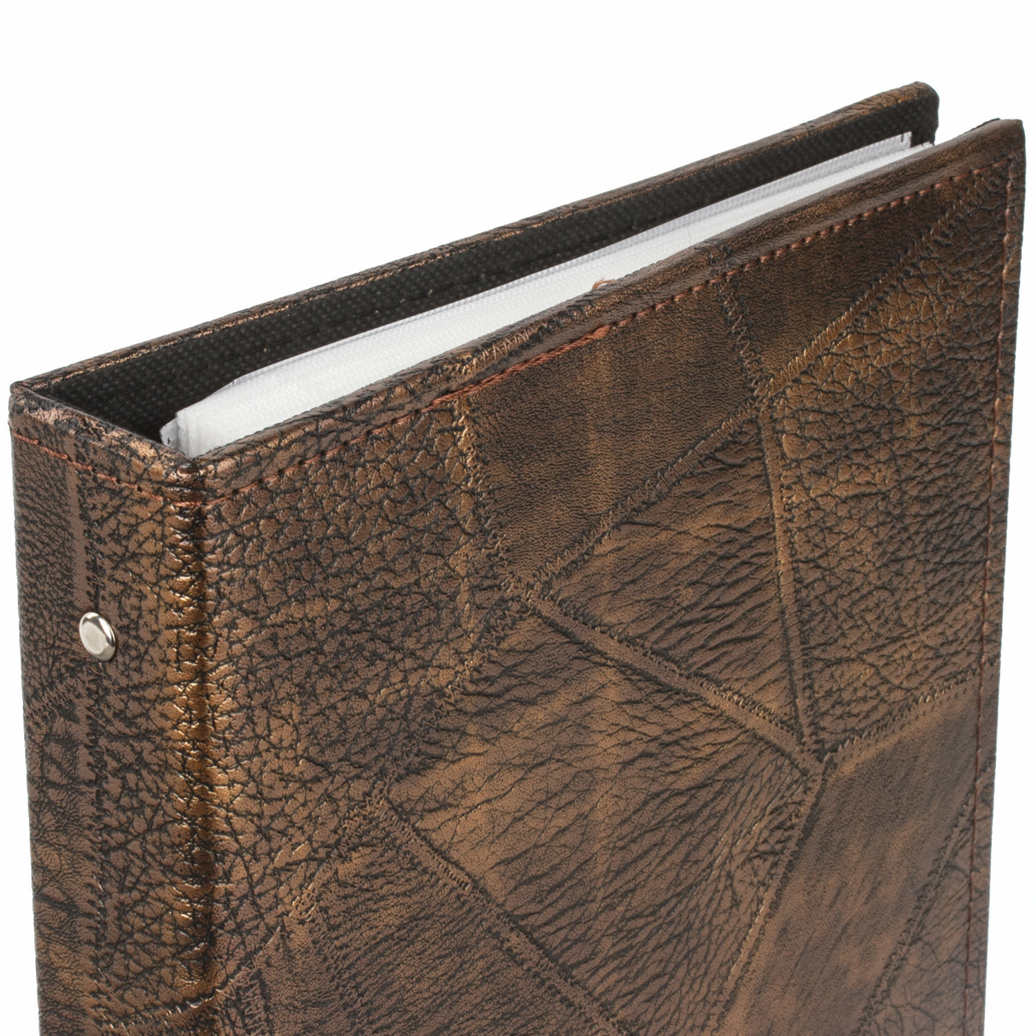 Кольцевое крепление для файловых страниц внутри альбома разъемное. Это позволяет в любой момент поменять порядок заправленных фотографиями страниц, сгруппировать их по-другому или вовсе убрать те, которые утратили свою ценность для хозяина альбома, не перемещая другие фотографии.