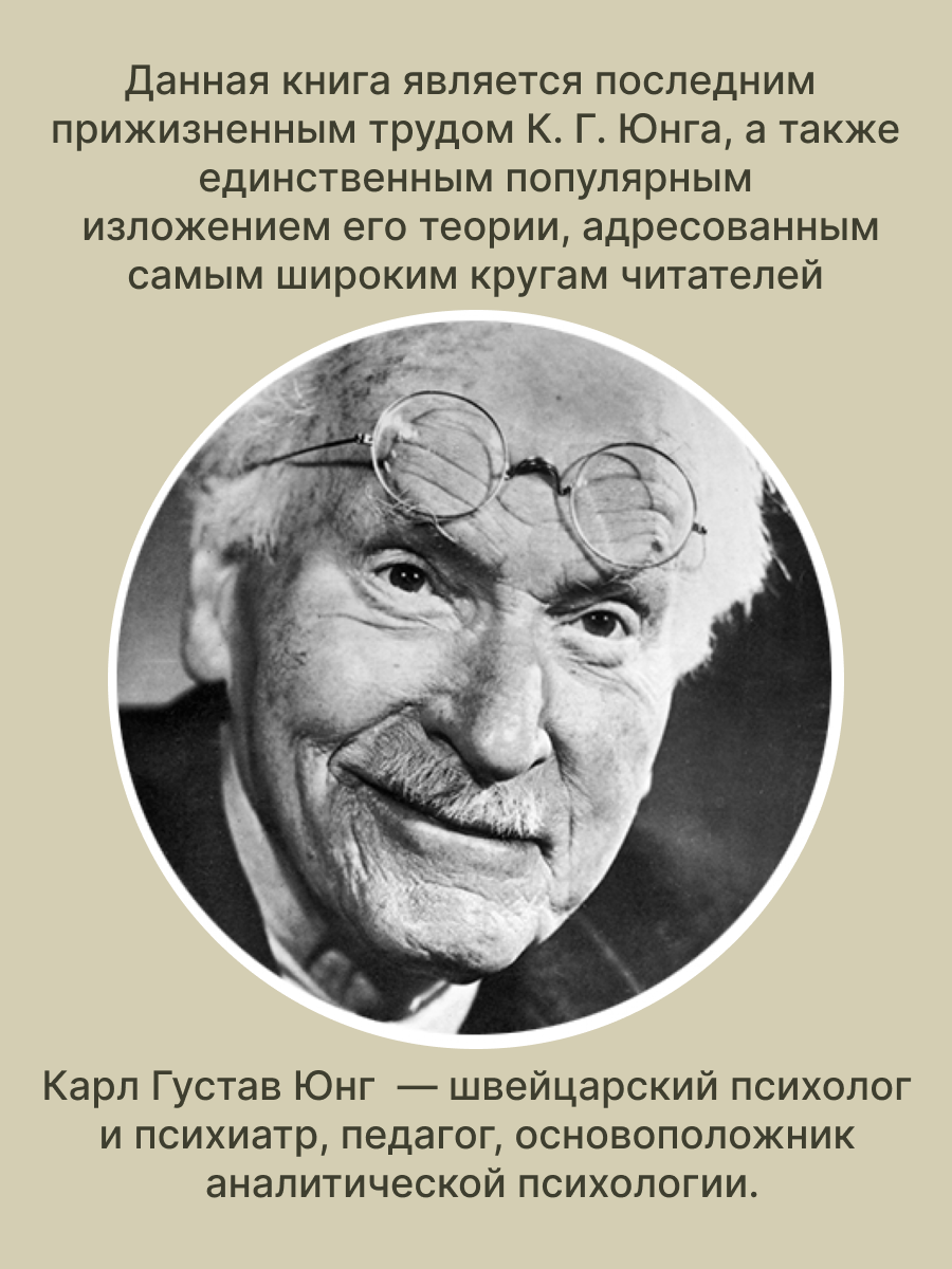 Данная книга является последним прижизненным трудом К. Г. Юнга, а также единственным популярным изложением его теории, адресованным самым широким кругам читателей. Используя метод «аналитической психологии» Юнга, его ближайшие сподвижники и ученики наглядно демонстрируют, как подсознание через символы влияет на древние мифы и современное искусство, на научный поиск и на весь жизненный путь человека от младенчества до старости.