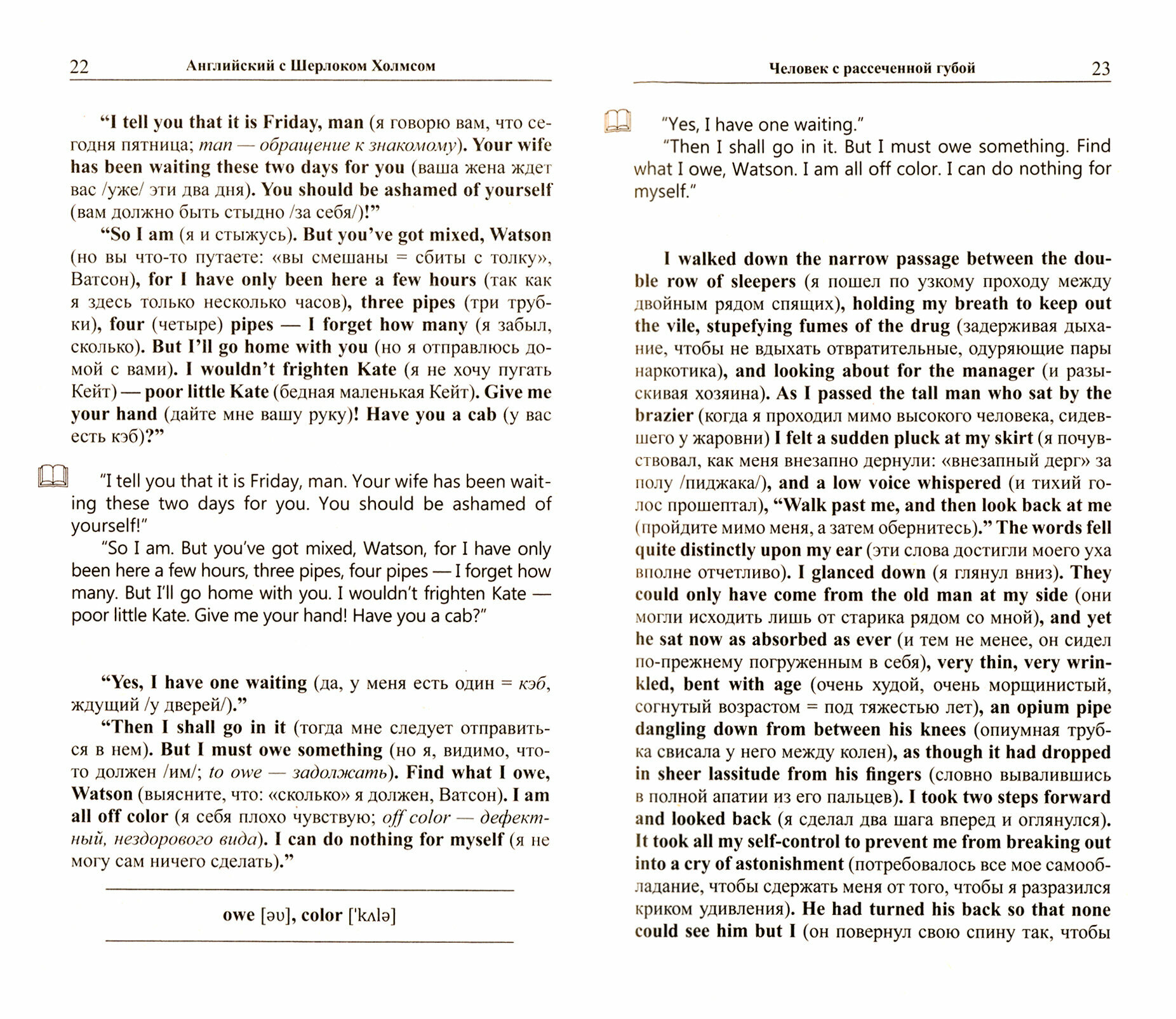 Несколько известных случаев из практики Шерлока Холмса в изложении его верного друга и спутника доктора Ватсона адаптированы в настоящем издании (без упрощения текста оригинала) по методу Ильи Франка: снабжены дословным переводом на русский язык и необходимым лексико-грамматическим комментарием.