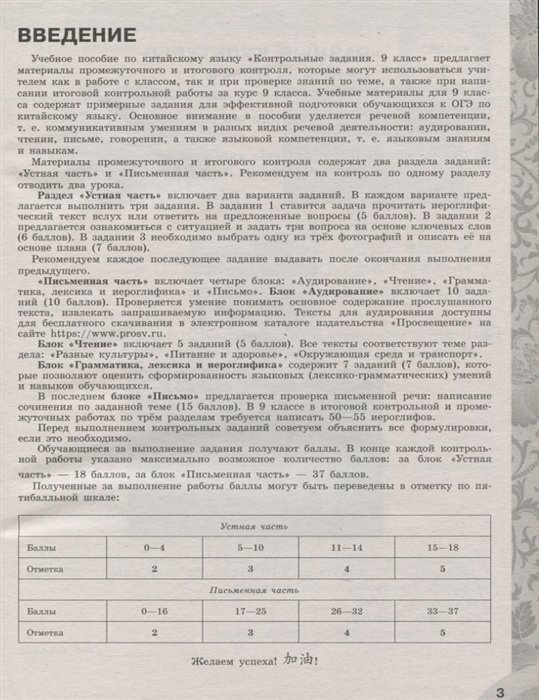 Цель пособия - организовать промежуточный и итоговый контроль пройденного материала при обучении китайскому языку, закрепить и систематизировать учебный материал, а также помочь учащимся подготовиться к итоговой аттестации по китайскому языку.