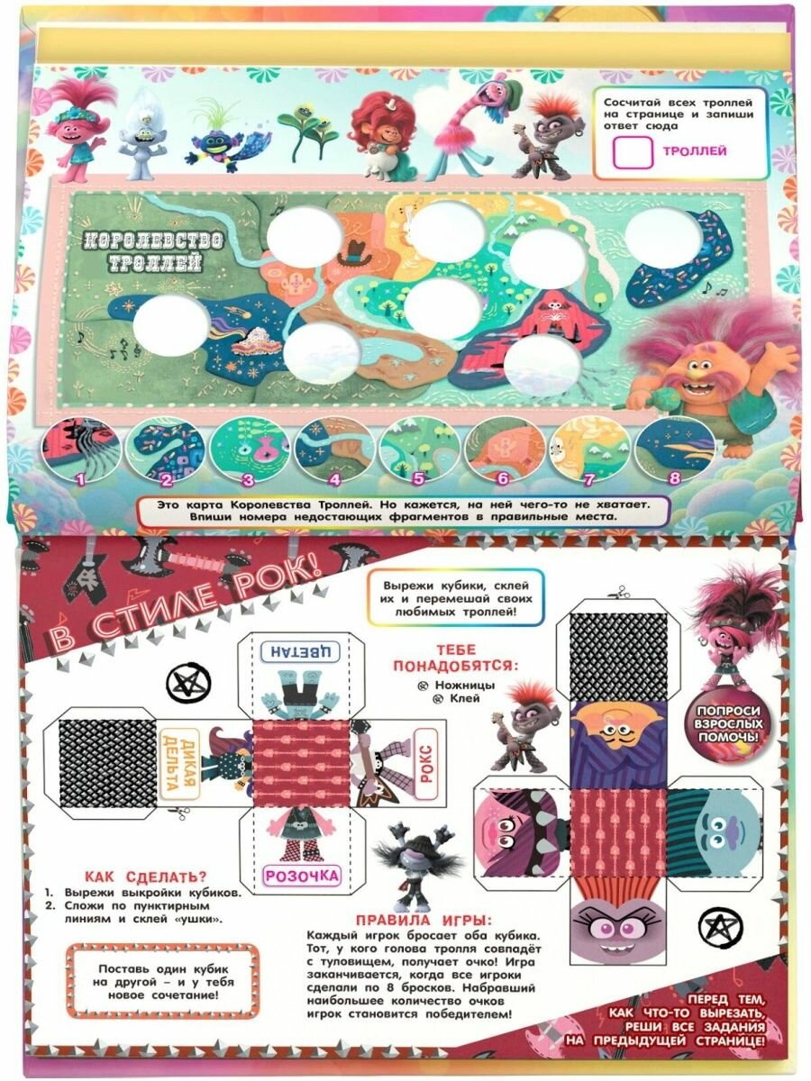 Издавна существовали шесть волшебных струн для разных музыкальных стилей: поп, фанк, техно, классика, кантри и рок. Но дерзкая королева Рокс решила, что ни один из стилей не достоин существования, кроме рока! И теперь Розочке и её друзьям придётся снова отправиться в путешествие, чтобы спасти гармонию в Королевстве Троллей. Помоги ей! Реши все головоломки и загадки в этом альбоме!