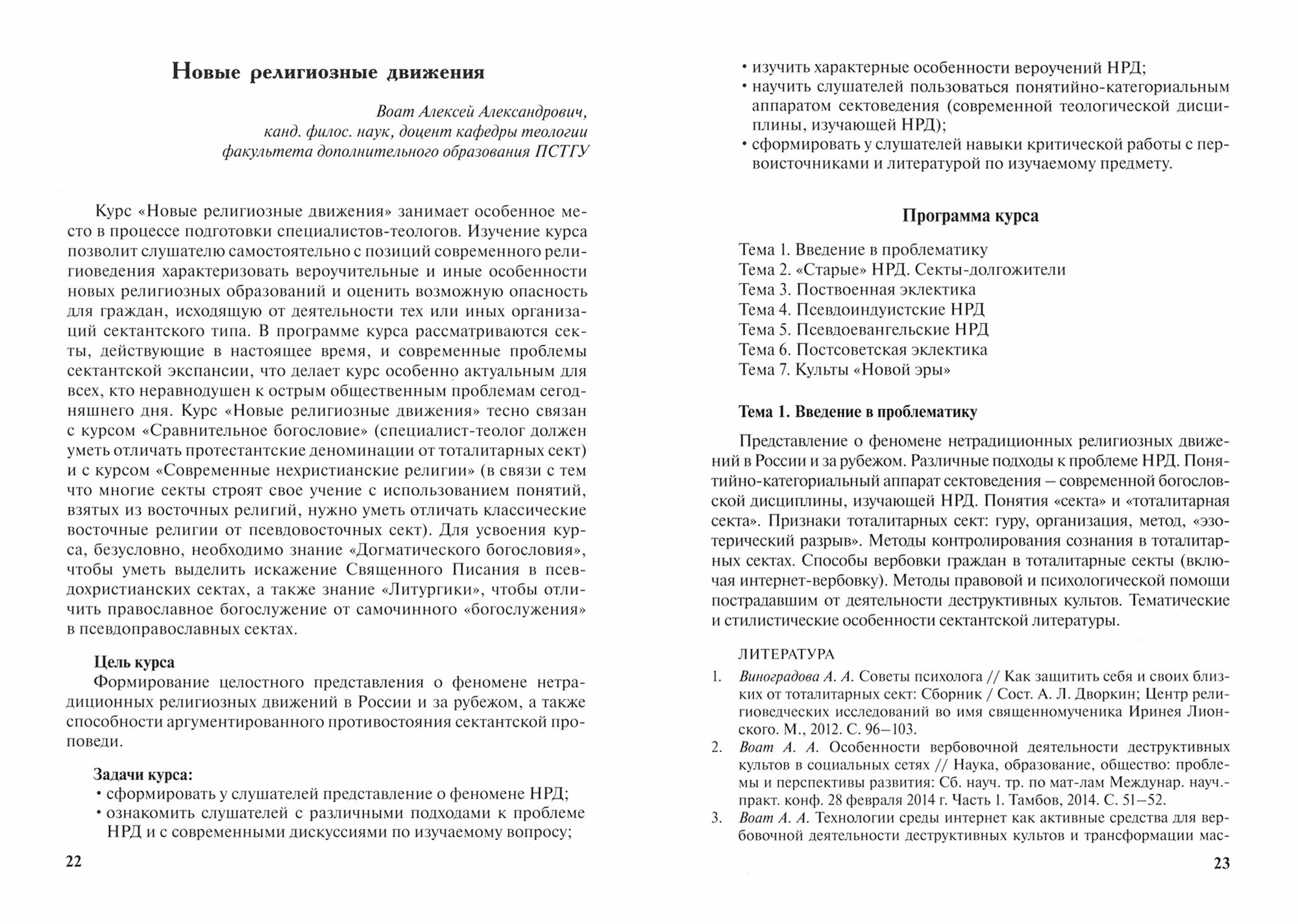 В издании представлены учебно-методические материалы программы профессиональной подготовки "Теология" по дисциплинам "Нехристианские религии" и "Новые религиозные движения", разработанные на кафедре теологии факультета дополнительного образования ПСТГУ.