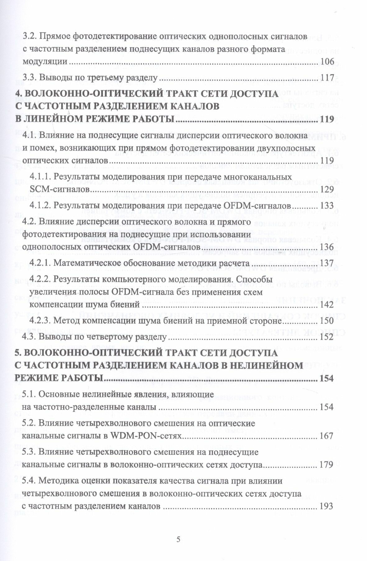 В монографии рассмотрены основные методы увеличения скорости передачи сигналов в пассивных оптических сетях доступа (PON) с помощью частотного разделения каналов в оптическом (DWDM) и радиочастотном диапазонах (SCM). Предложены новые технические решения для увеличения пропускной способности существующих PON-сетей путем незначительных изменений в оптической инфраструктуре сети доступа, замены активного оборудования на более широкополосное с частотным разделением каналов. Представлены математические методы и компьютерные модели, позволяющие оценить искажения многоканальных сигналов при прохождении через компоненты волоконно-оптического тракта.