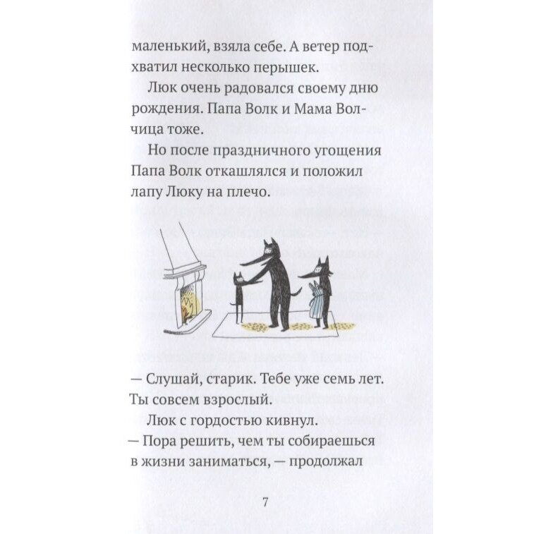 Очень удивило,что книга вышла в серии для начинающих читать.Книга ни разу не детская.Метафоричная и лиричная-да.Но детская-нет.Восьмилетняя дочь не оценила поступок родителей волчонка Люка.Родители в день рождения волчонка решили,что самое время его отправить из дома на поиски новой жизни,на поиски себя.В пути волчонку к счастью повстречались друзья.И все вместе они отправились в путешествие по морю жизни.Все.