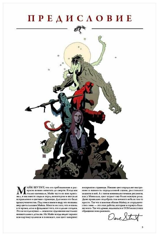 Артбук открывают предисловие колориста Дейва Стюарта и вступление самого Миньолы. Эта книга наверняка придется по душе как фанатам "Хеллбоя", так и поклонникам комиксов в целом.