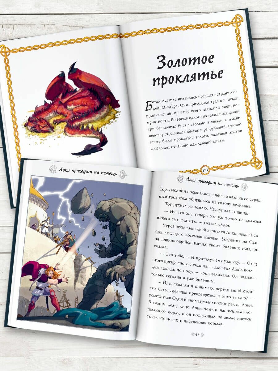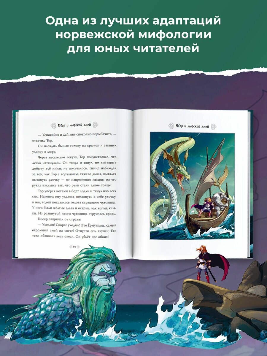 Данная книга одна из лучших адаптаций норвежской мифологии для маленьких читателей с множеством поражающих воображение персонажей и эпических боевых историй. Саги о героях, драконах, морских змеях, огненных демонах, ледяных гигантах и конечно же скандинавских богах пересказаны для детей доступным языком и дополнены современным комиксным рисованием.