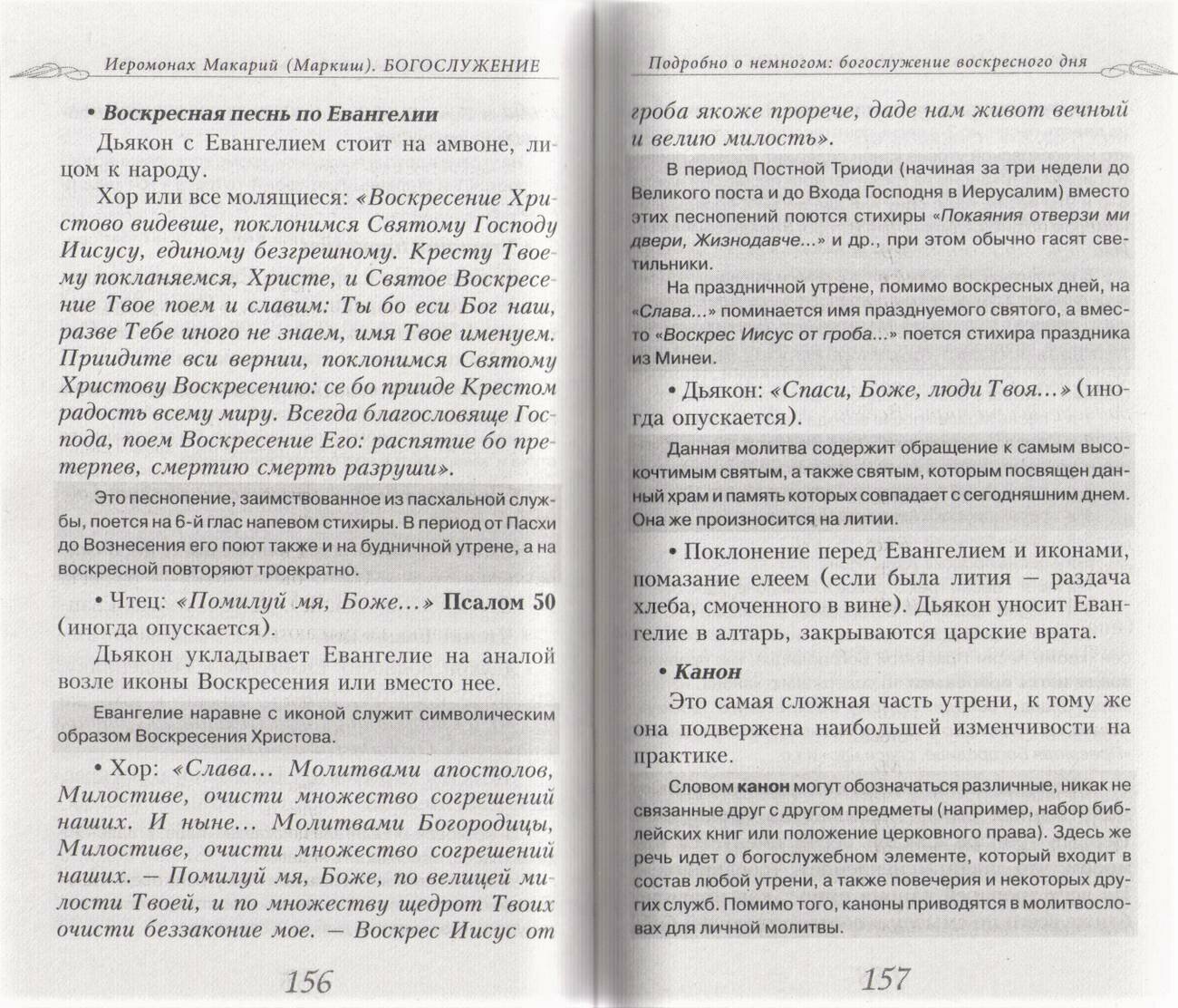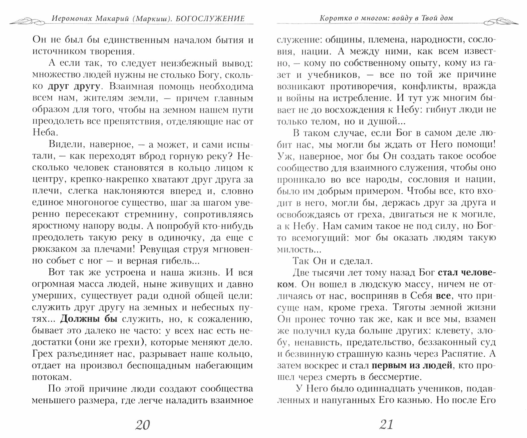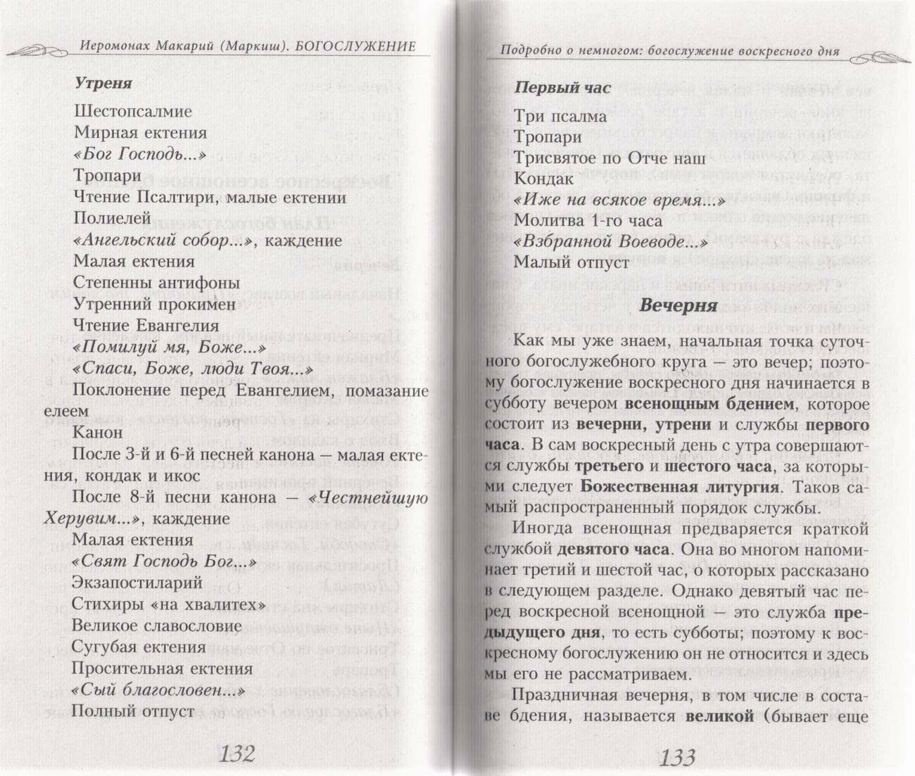 Книга подойдет для тех кто хочет изучить и полюбить богослужение. Как тем кто еще не знаком совсем с тем что происходит в храме, так и для тех кто знает основной строй службы и основные молитвы и песнопения. Именно в этой книге речь идет о всенощном бдении и Литургии воскресного дня. В первой части раскрыт смысл и значение богослужения для Бога, для человека, значение внешней стороны молитвы (храма, обряда итд). Вторая часть уже рассматривает сам строй службы. Для меня наконец- то прояснилось...