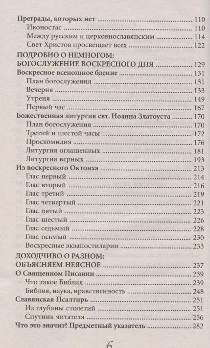Простое и доступное изложение принципов Устава и особенностей приходской богослужебной практики, воскресного и праздничного богослужений не только проясняет их суть, но дает возможность следить за богослужением, воспроизводя наиболее распространенные литургические тексты с необходимыми краткими пояснениями.
