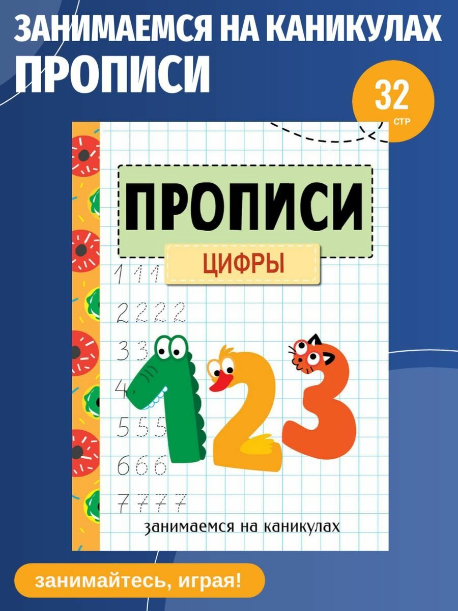 В этих прописях ребёнок сможет не только потренироваться писать цифры от 0 до 9. Простые задания помогут ему научиться использовать эти цифры в жизни. Заполнение прописей способствует развитию мелкой моторики, сообразительности и внимательность и фантазии. Занимайтесь, играя!