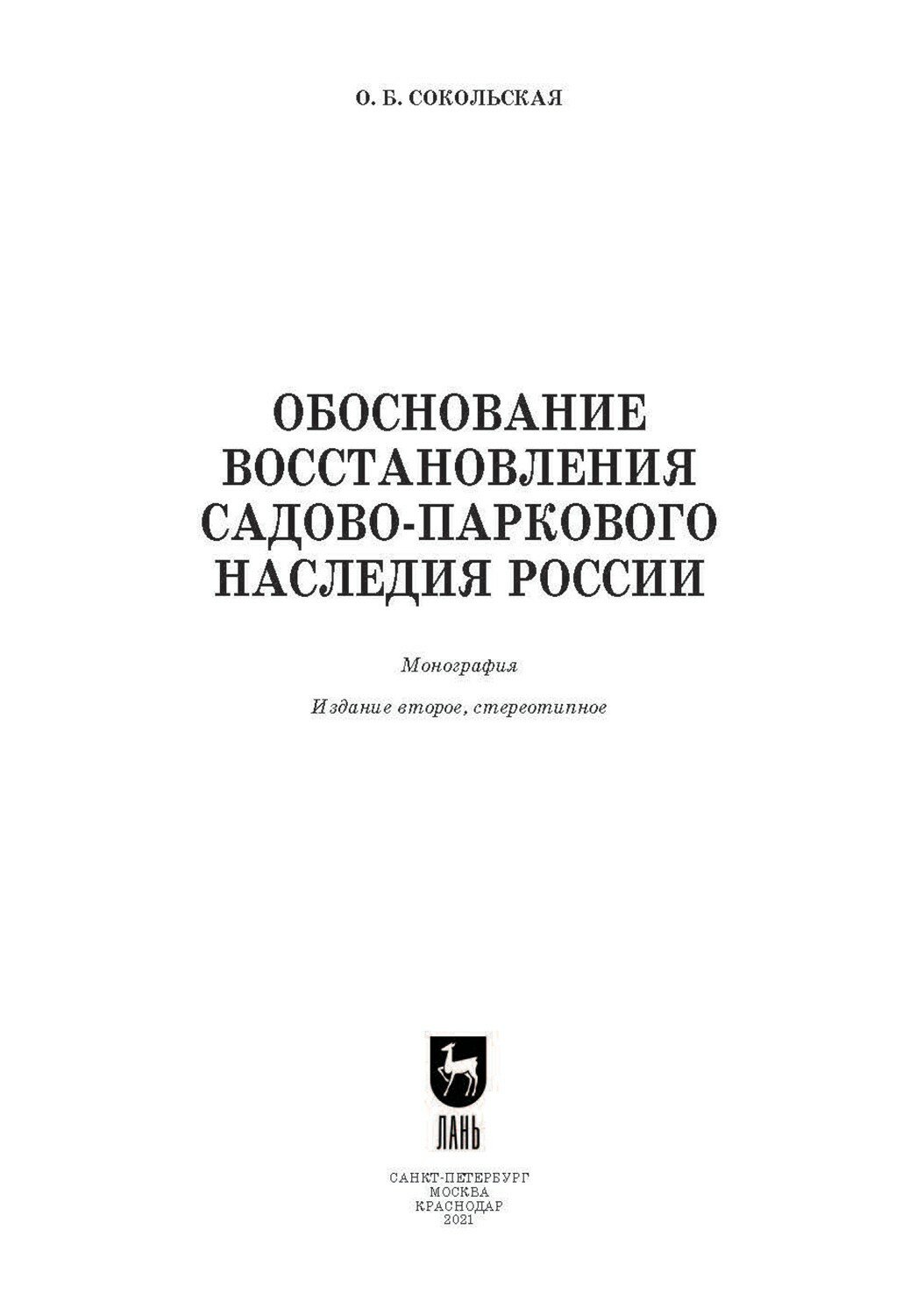 Обоснование восстановления садово-паркового наследия России (Сокольская Ольга Борисовна); Лань, 2020