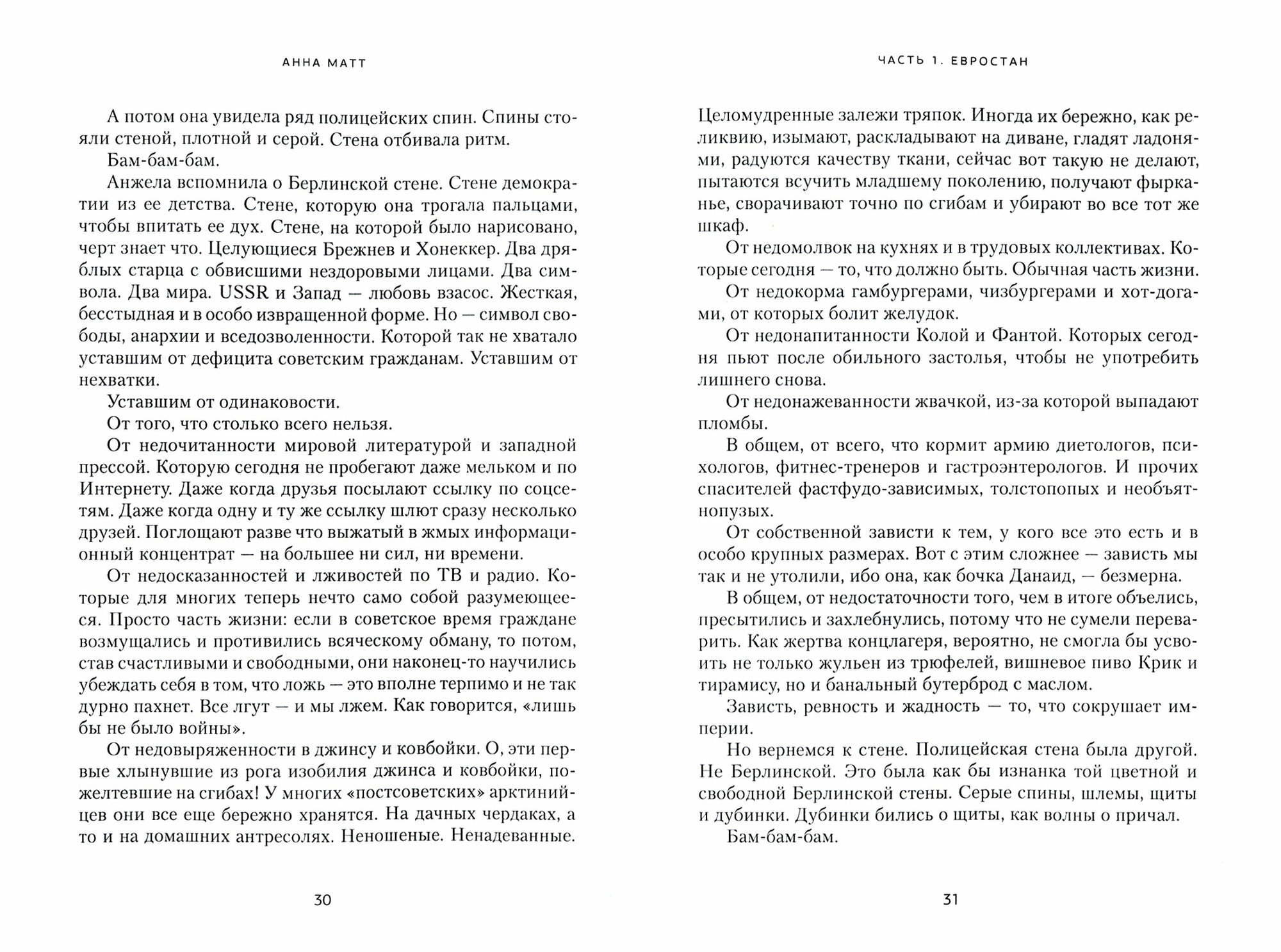 Прочел книгу за ночь, чего давно не делал. Это увлекательный и динамичный современный тревелинг и одновременно острый сатирический социальный роман. Главная героиня путешествует по раздираемой мигрантами и противоречиями Европе(Бельгия, Германия, Франция), заглядывает в высокие кабинеты и описывает то, как делается современная политика. Потом попадает в Среднюю Азию, где сталкивается с жесткими рамками диктатуры, Грузию. Затем - пресыщенная Москва и российская провинция, описанные по-щедрински саркастично, красочно и точно. Мне очень понравилось, язык отличный, рекомендую!