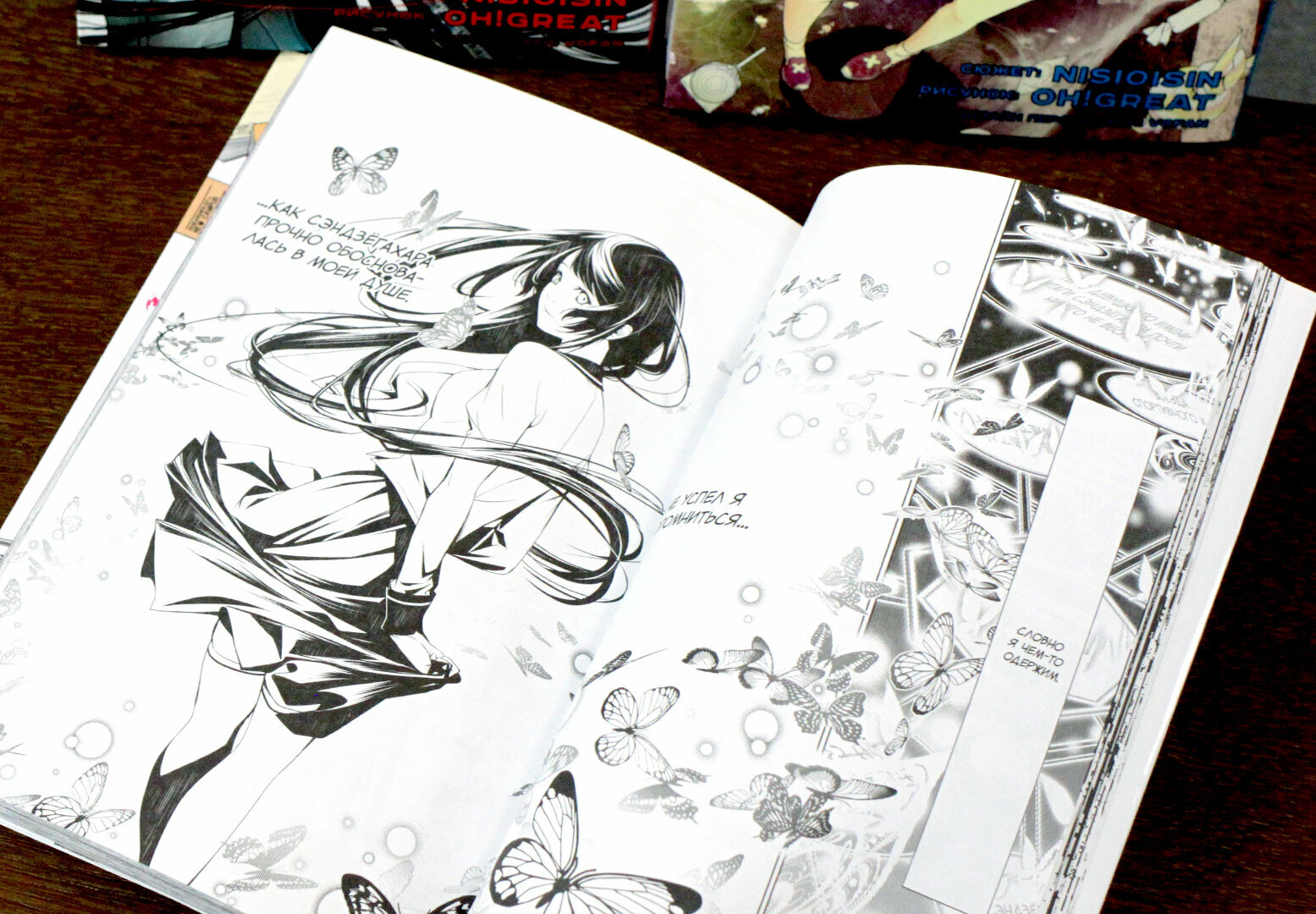 Суперобложка, том в целлофане, качество отличное. Манга интересна тем, что сюжет всей серии связан с синтоизмом (традиционная религия в Японии). Подаётся эта тематика для человека незнакомого с ней в очень удобоваримом варианте, что является огромным плюсом, ведь мы не только можем наслаждаться рисовкой, но и немного погружаться в культуру самой Японии. По сюжету этот том соответствует сериям 4 (с середины) и 5 аниме Bakemonogatari. В манге много дополнительного материала (по сравнению с аниме). Узнаём историю Хатикудзи в этом томе и ждём продолжения! Фигурка в комплект не входит :)