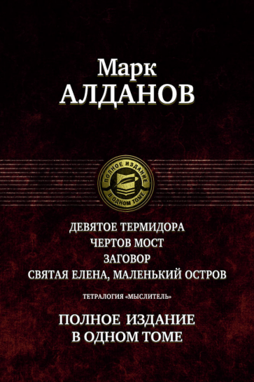 В одном томе публикуется тетралогия "Мыслитель" известного русского прозаика Марка Алданова (1886-1957), посвященная истории Французской революции и наполеоновских войн. В нее вошли романы "Девятое Термидора" (1923), "Чертов мост" (1925), "Заговор" (1927) и "Святая Елена, маленький остров" (1921).