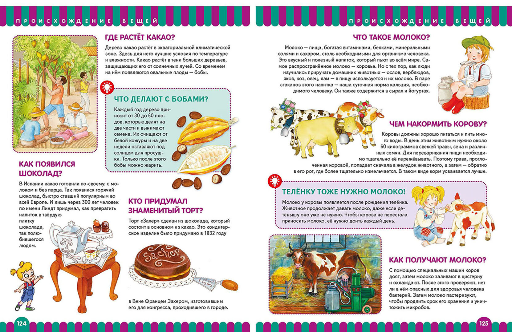 В этой красочной книге также раскрываются тайны удивительного мира растений, увлекательно рассказывается о теле человека. Вместе с ребёнком вы сможете узнать о происхождении самых разных вещей: от соли и хлеба до хлопка и нефти.