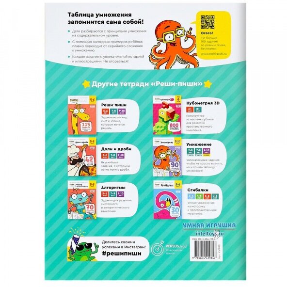 В тетради собраны 85 заданий, которые помогут ребёнку самостоятельно и в интересной форме разобраться с принципами умножения. Это позволяет не просто запомнить результат умножения чисел друг на друга, а понять, как это работает!