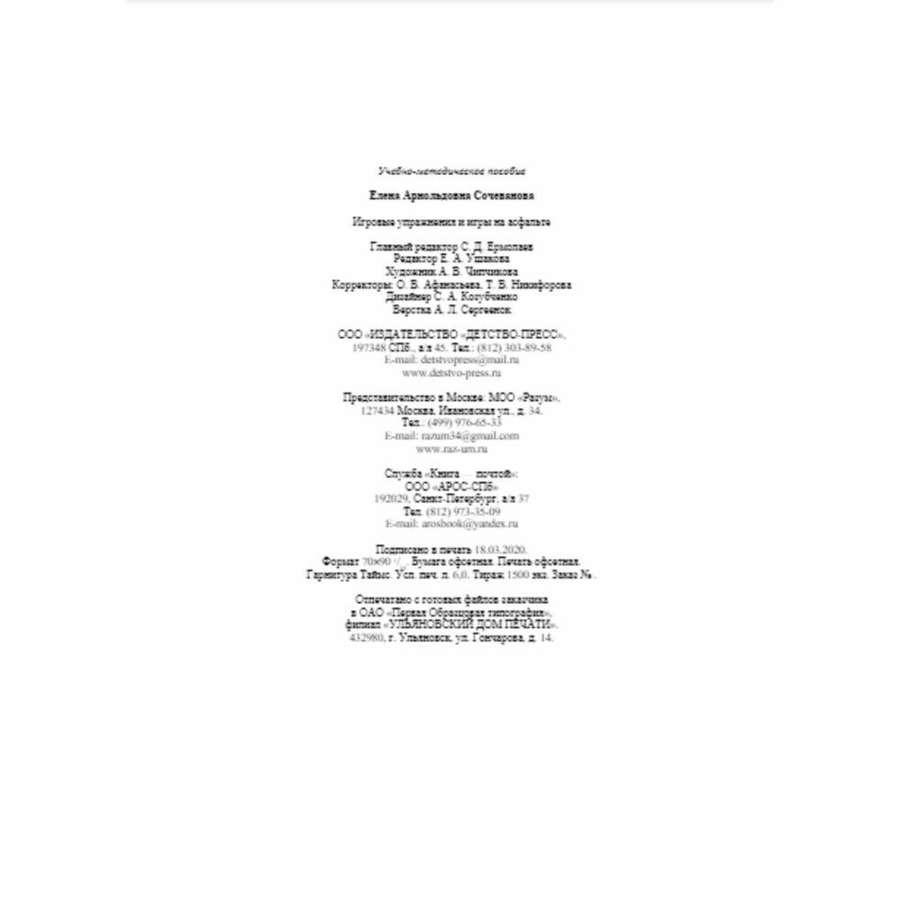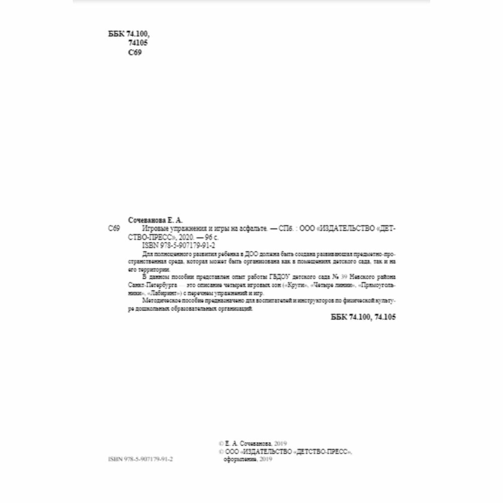 Игровые упражнения и игры на асфальте. 2-7 лет. (Сочеванова Елена Арнольдовна); Детство-Пресс, 2020