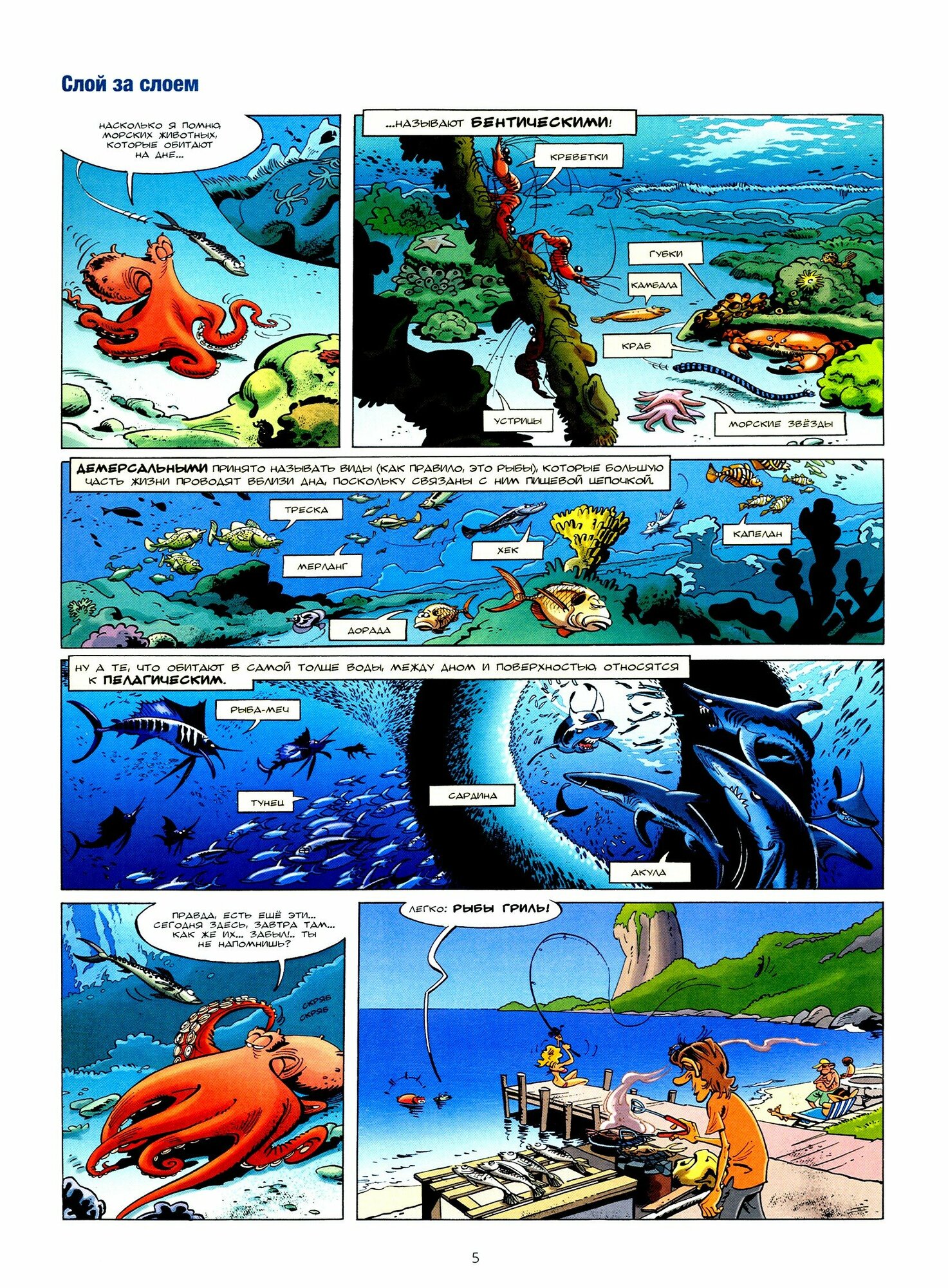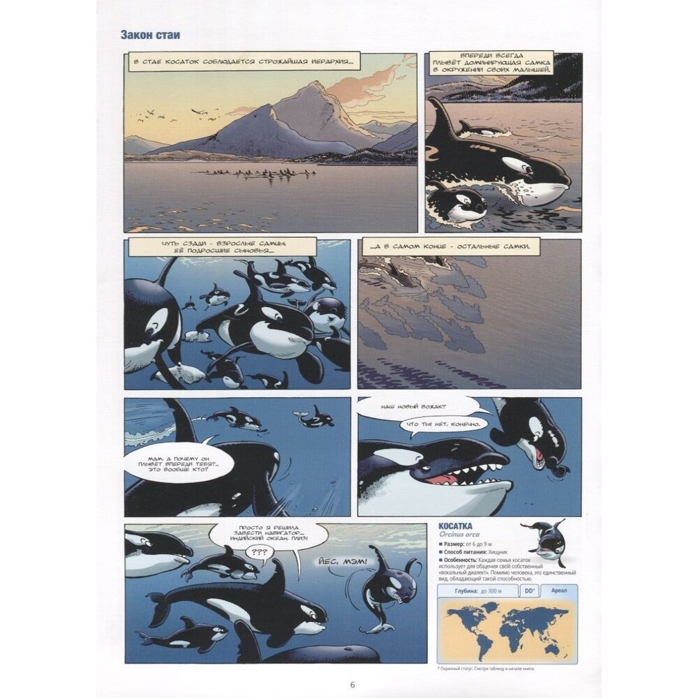 Три предыдущих тома были куплены и зачитаны. И тут внезапно появляется 4 том. Просто подарок) Ребенок 8 лет читает и спрашивает о морских животных. Это самое главное, что бы был интерес. Книга сама на толстой мелованной бумаге, красивые цветные иллюстрации. Рекомендую тем кто интересуется морским миром. Не забывайте, что это все таки комикс, т.е. развлекательно - образовательная книга. Еще рекомендую этого же автора серия книг про насекомых.