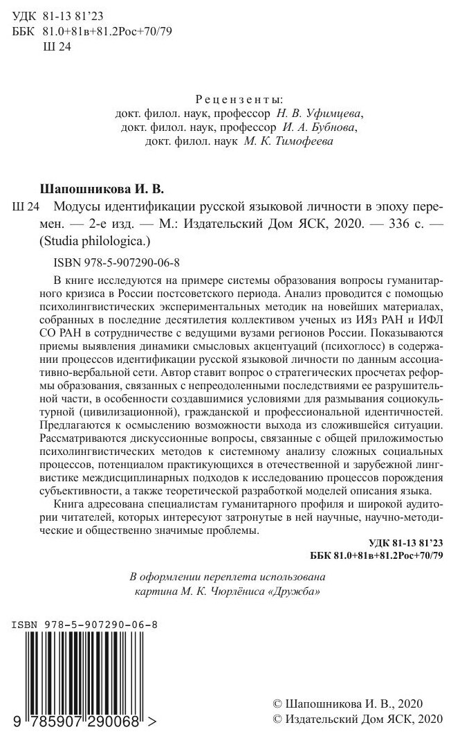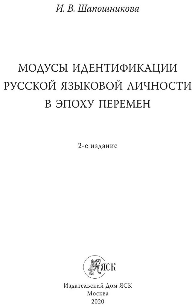 Модусы идентификации русской языковой личности (Шапошникова Ирина Владимировна); Языки славянских культур, 2020