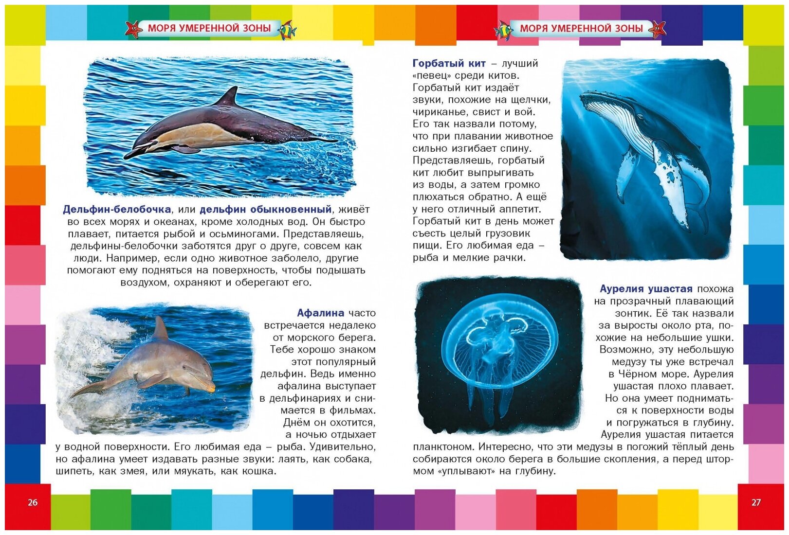 Перед вами книга о животных морей и океанов. Этих морских обитателей ваш ребёнок пока может увидеть только на картинках или в мультфильмах, поэтому уверены, что более подробное знакомство с ними в нашей красочной энциклопедии понравится и ему, и вам. Он узнает о животных, которые обитают в тропических и холодных морях, бороздят просторы океанов, прячутся на глубине морских вод, познакомится с огромным синим китом и крошечной креветкой, необычными рыбами и симпатичными тюленями!